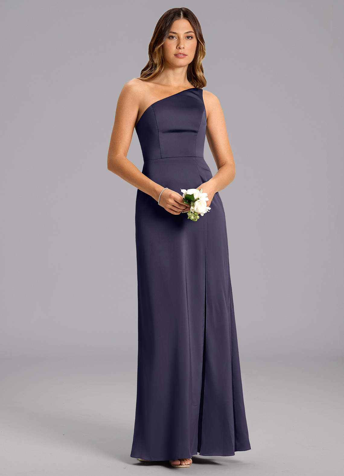Jurk van Stretch Satijn met A-Lijn One-Shoulder Stormachtig