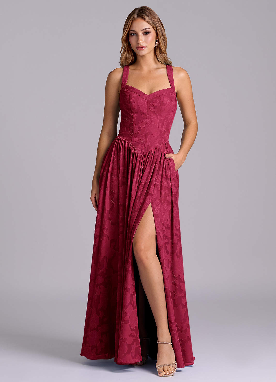 Jurk van Bloemen Burn-out met A-Lijn Korset Bourgondië