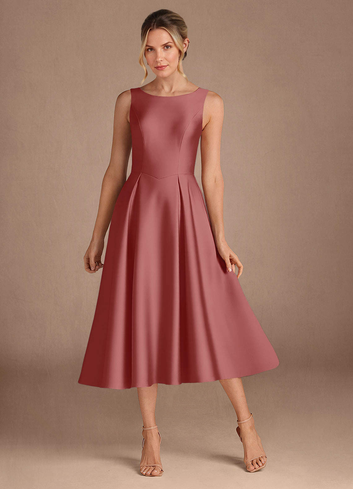 A-Lijn Jurk van Stretch Satijn Geplooid Antieke Roos