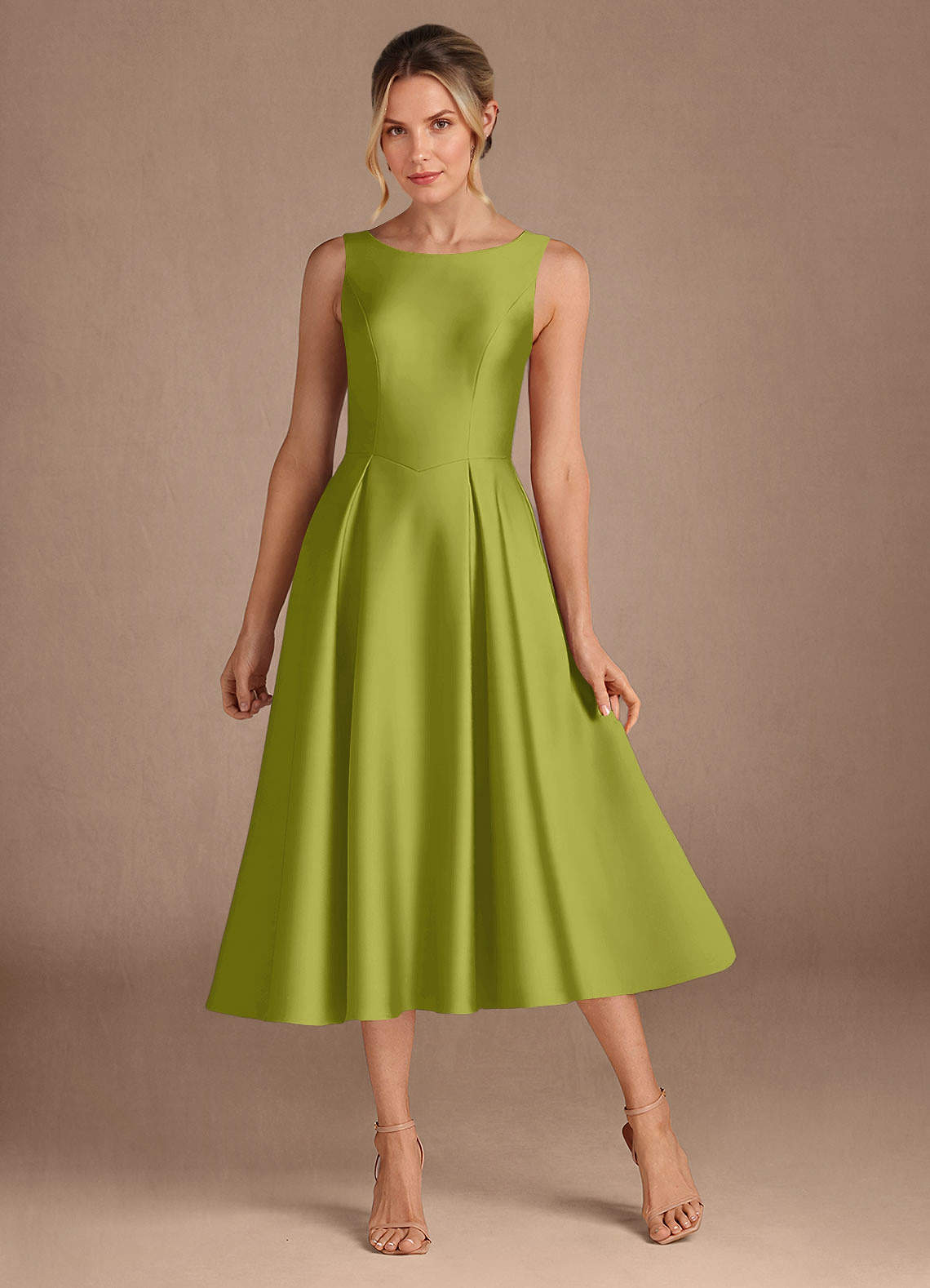 A-Lijn Jurk van Stretch Satijn Geplooid Citroengras