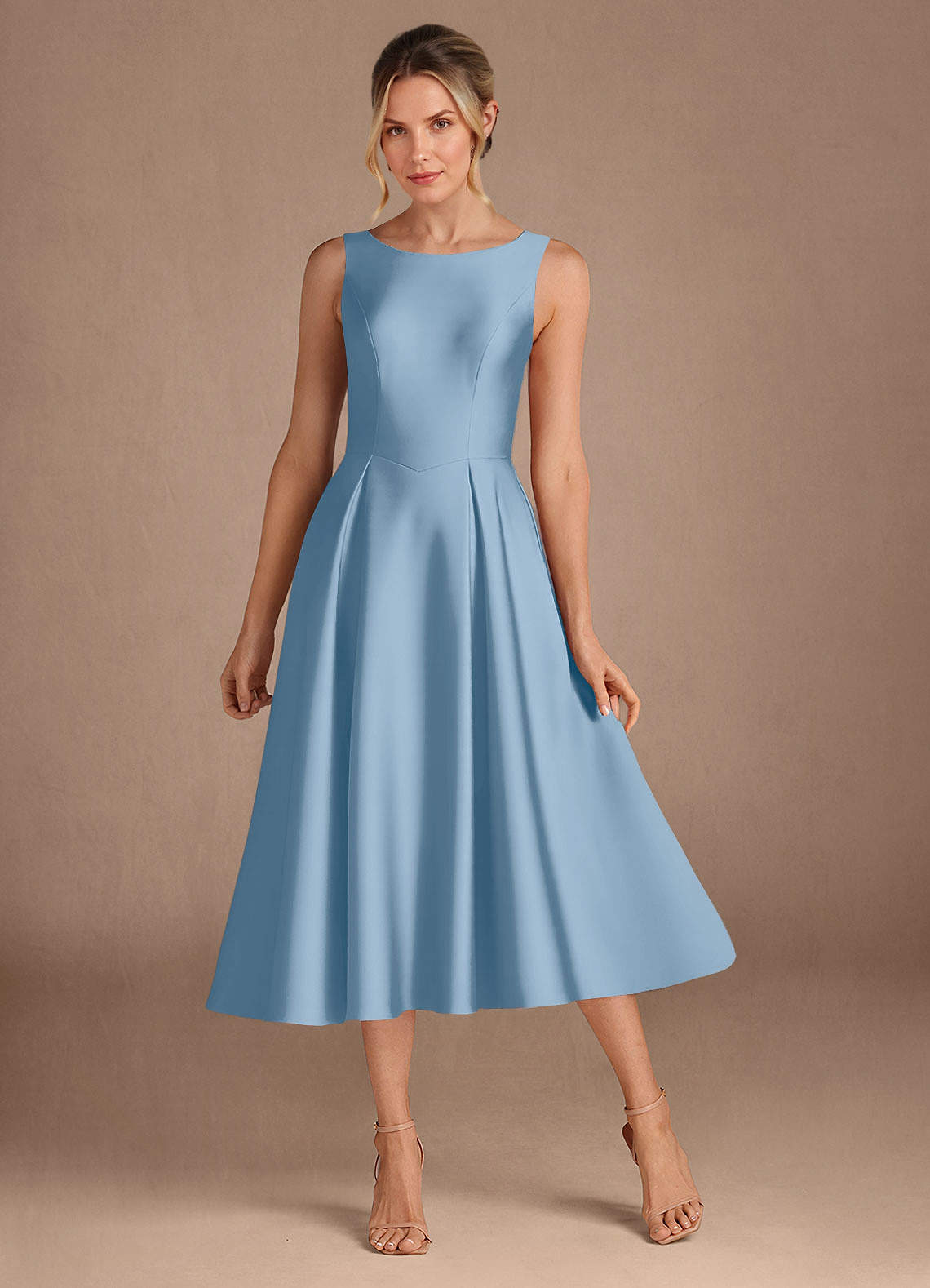A-Lijn Jurk van Stretch Satijn Geplooid Poederblauw