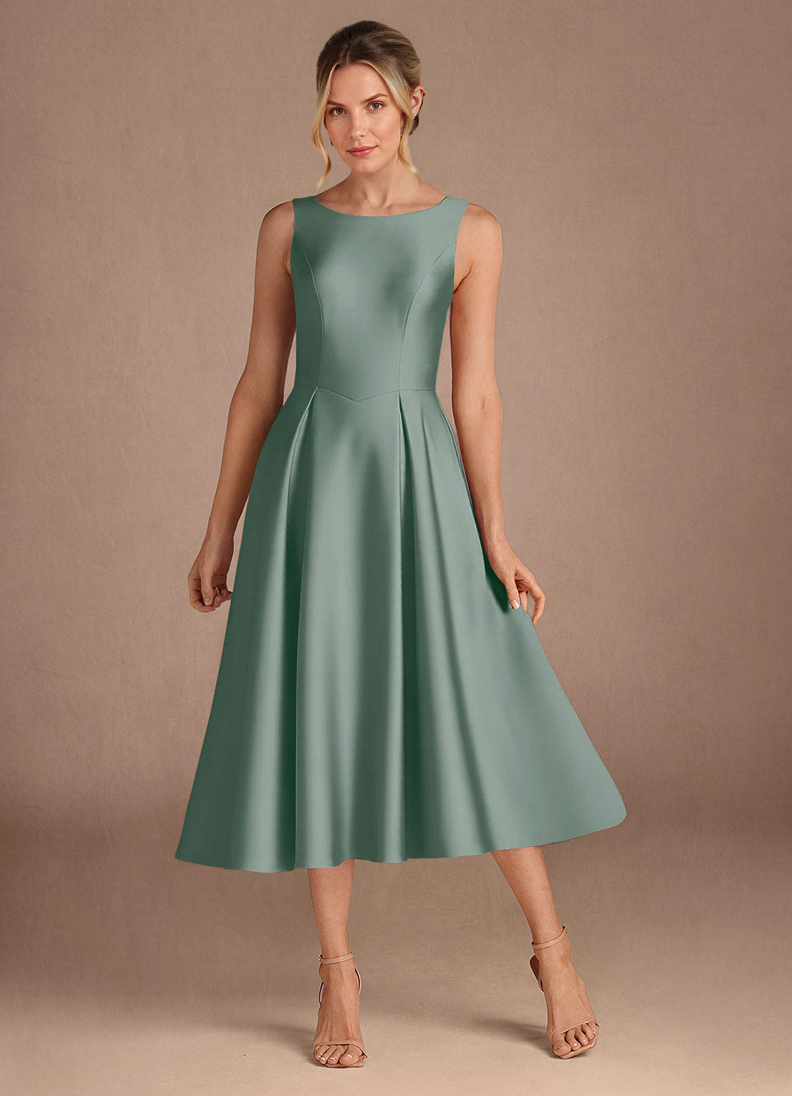A-Lijn Jurk van Stretch Satijn Geplooid Zilveren Salie