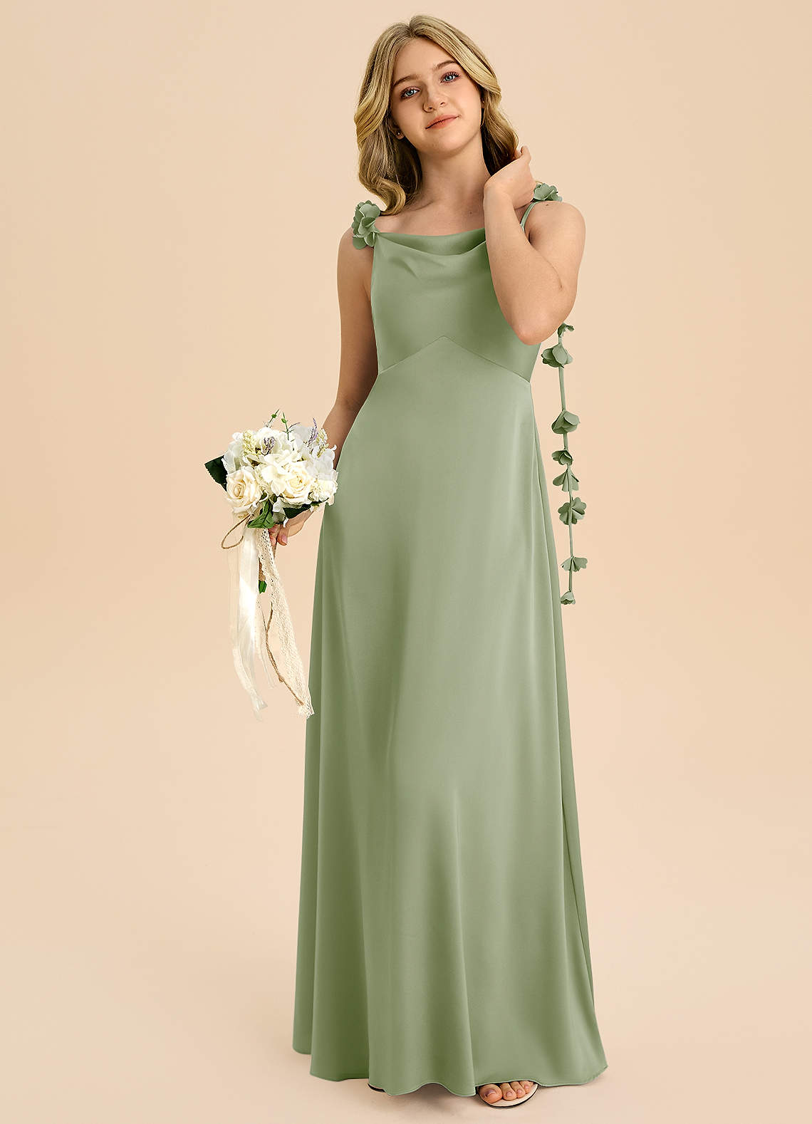 Jurk van Stretch Satijn met rijk Geplooid Stoffige Salie