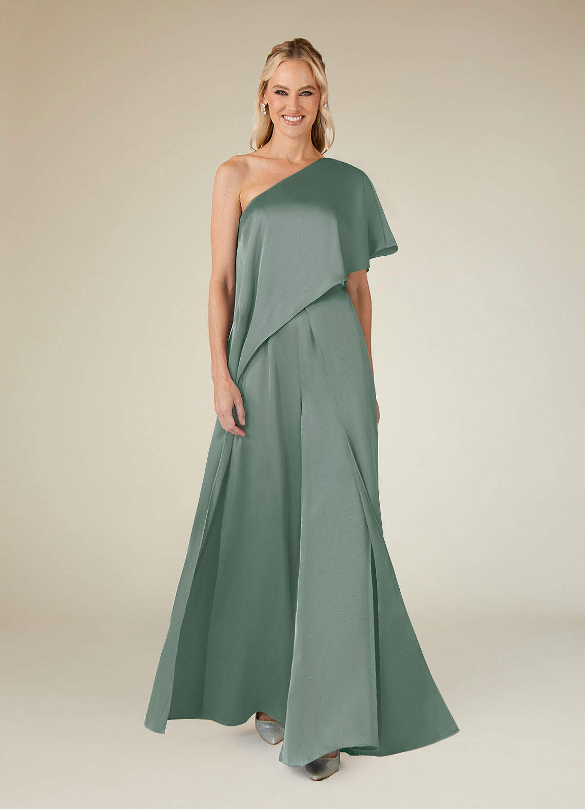 Broekpak Jurk van Stretch Satijn Zilveren Salie