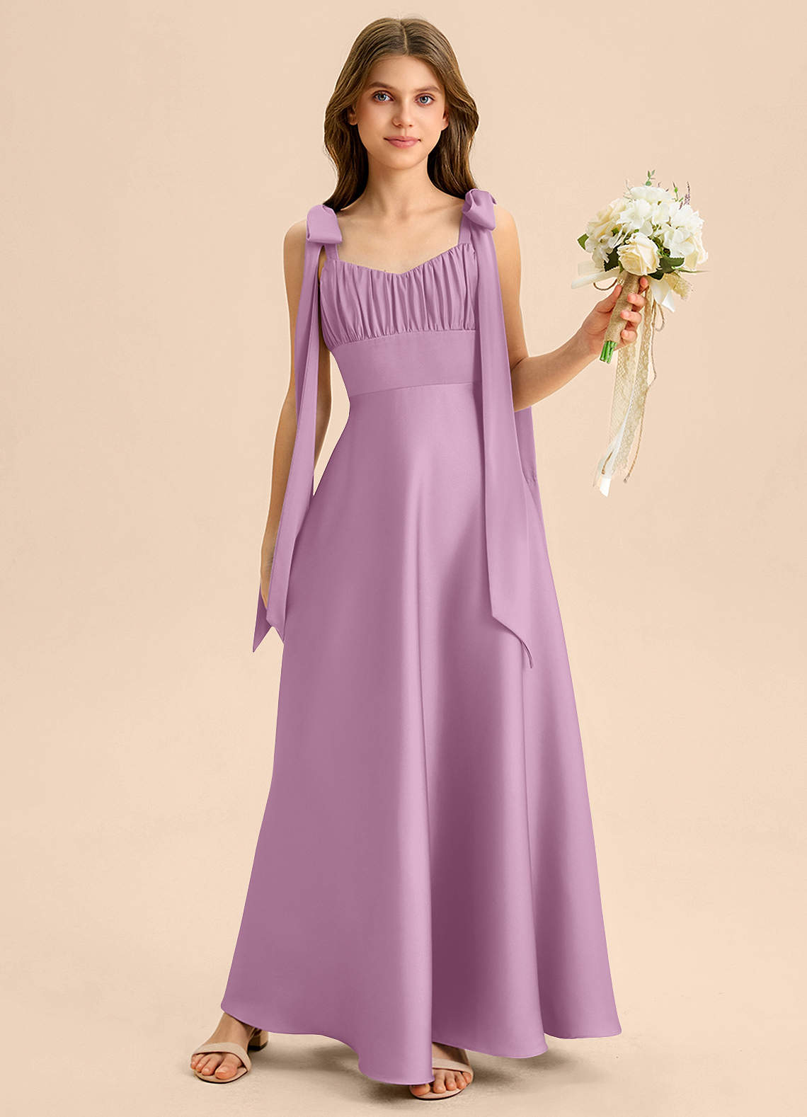 Jurk van Stretch Satijn met A-Lijn Boog Blauweregen