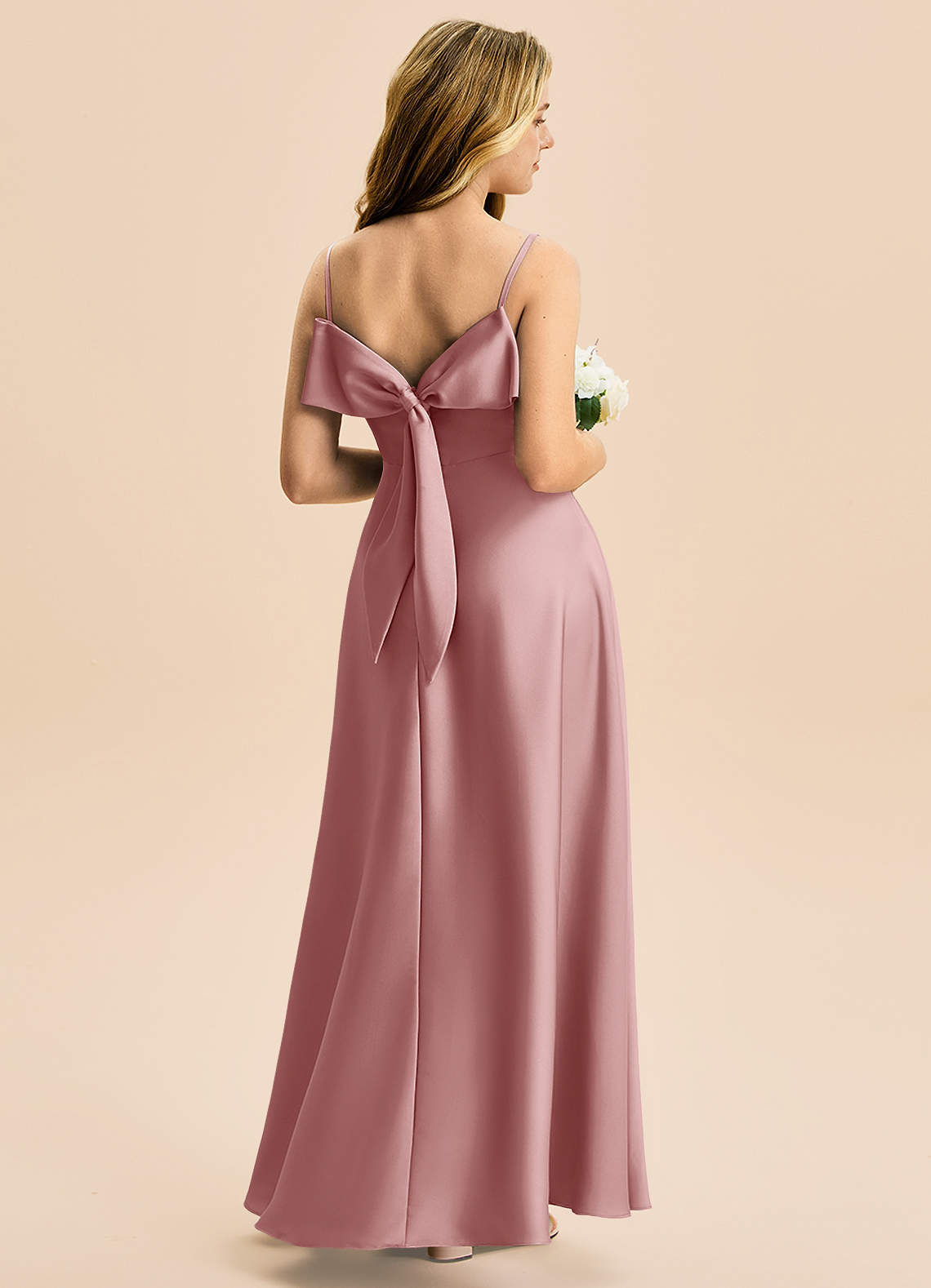Jurk van Stretch Satijn met A-Lijn Geplooid Stoffige Roos