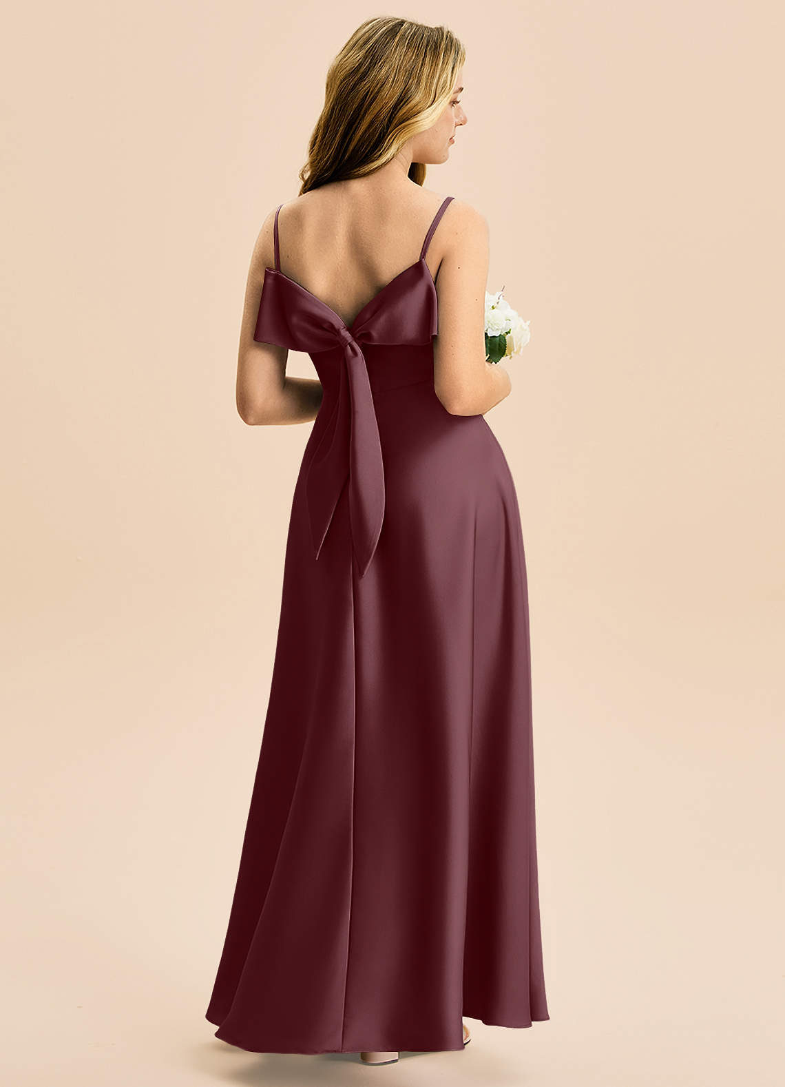 Jurk van Stretch Satijn met A-Lijn Geplooid Sangria