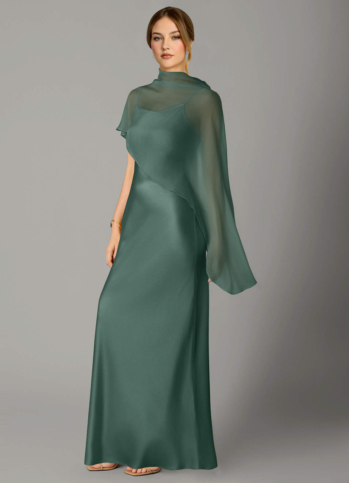 Jurk van Stretch Satijn met A-Lijn Hoge Kraag Eucalyptus