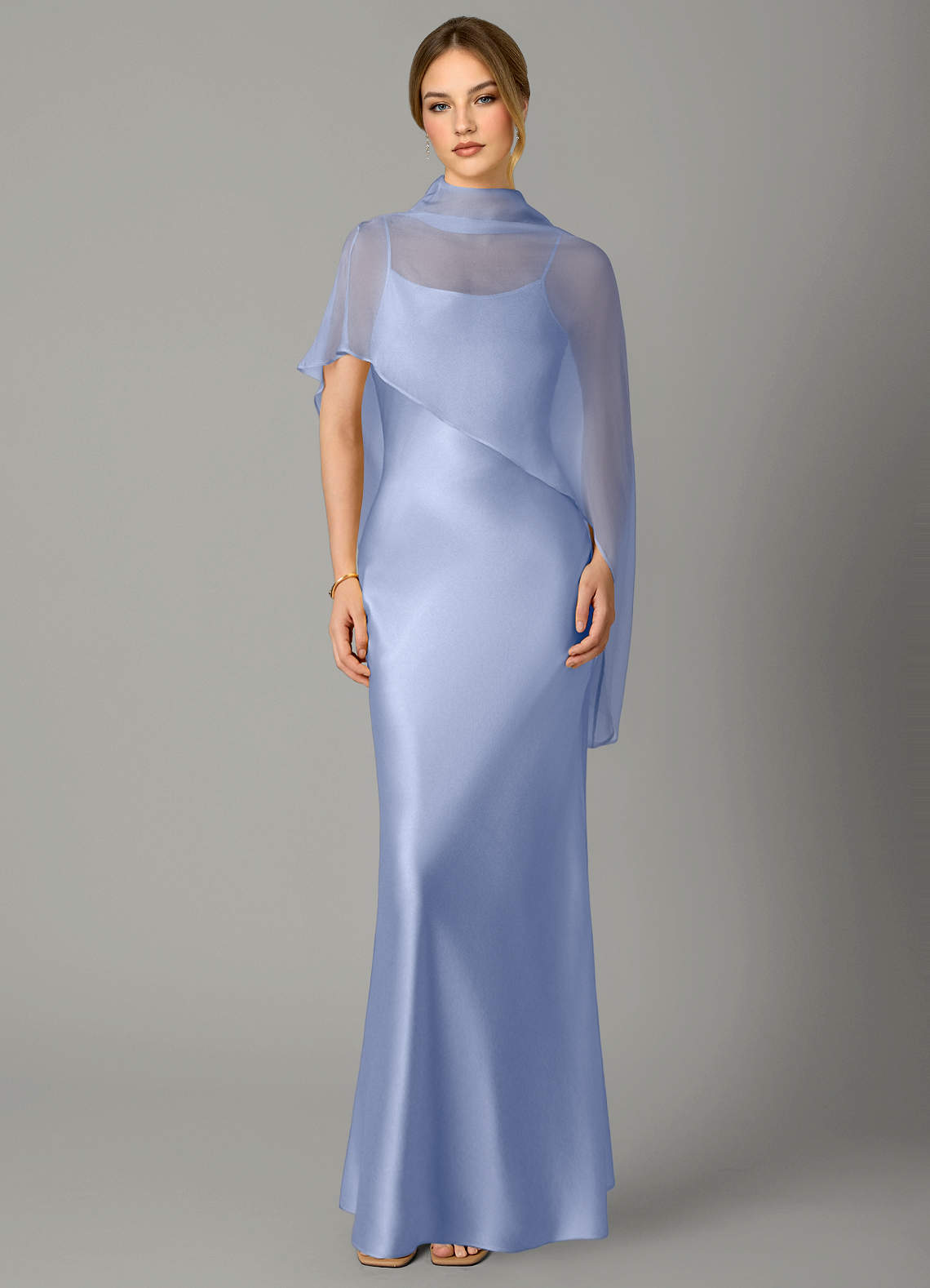 Jurk van Stretch Satijn met A-Lijn Hoge Kraag Ijs