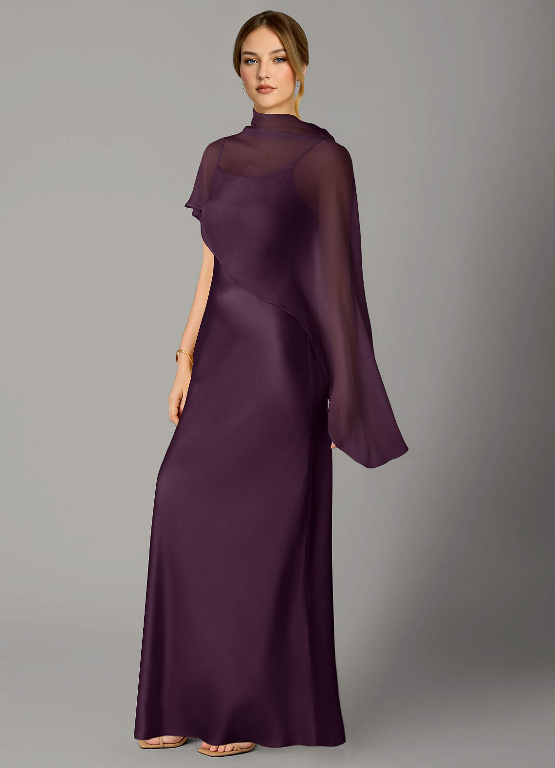 Jurk van Stretch Satijn met A-Lijn Hoge Kraag Pruim