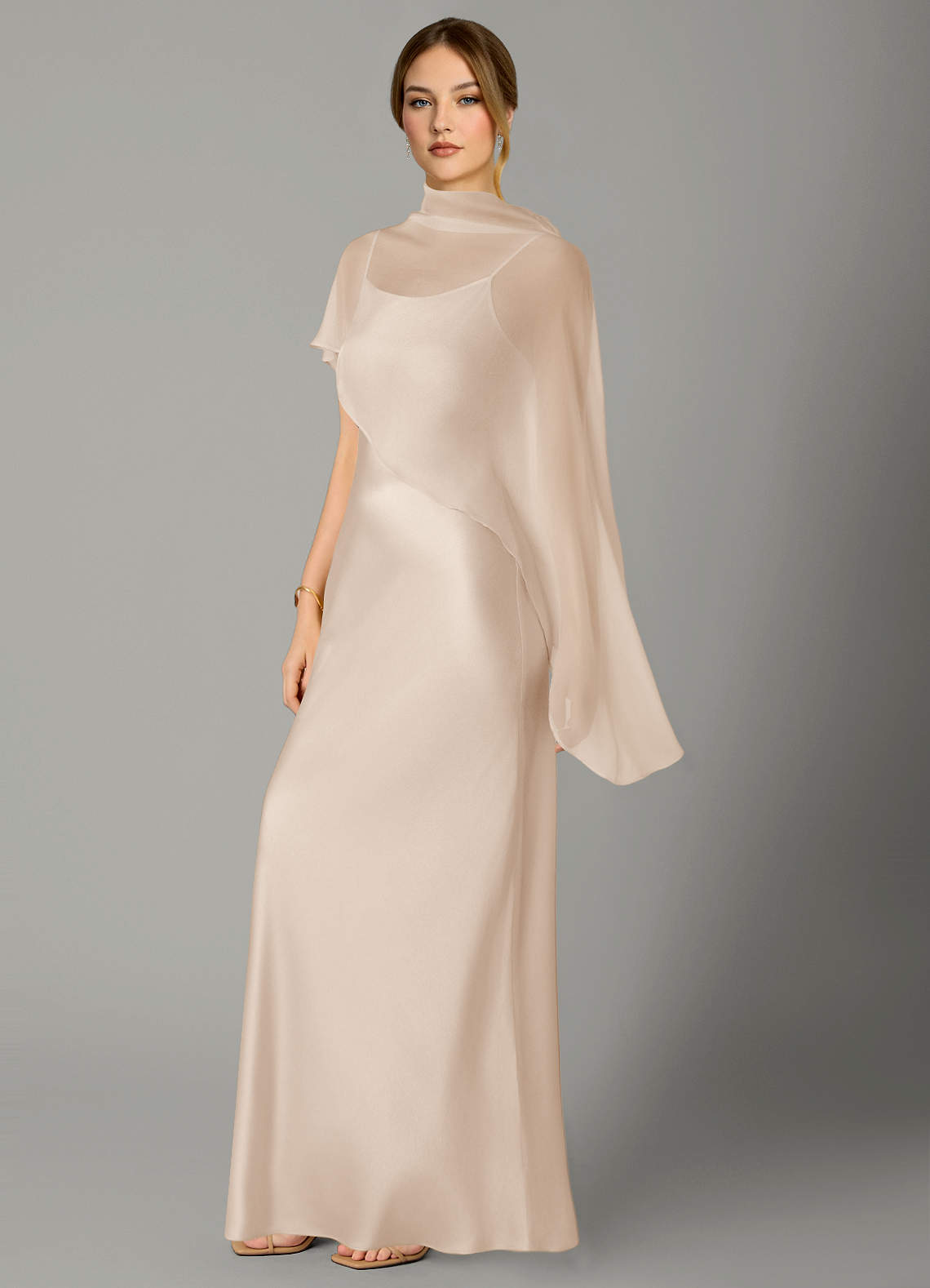 Jurk van Stretch Satijn met A-Lijn Hoge Kraag Wit Albast