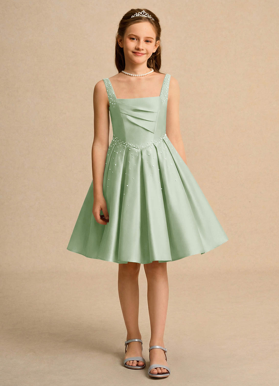 Baljurk Jurk van Mat Satijn Geplooid Stoffige Salie