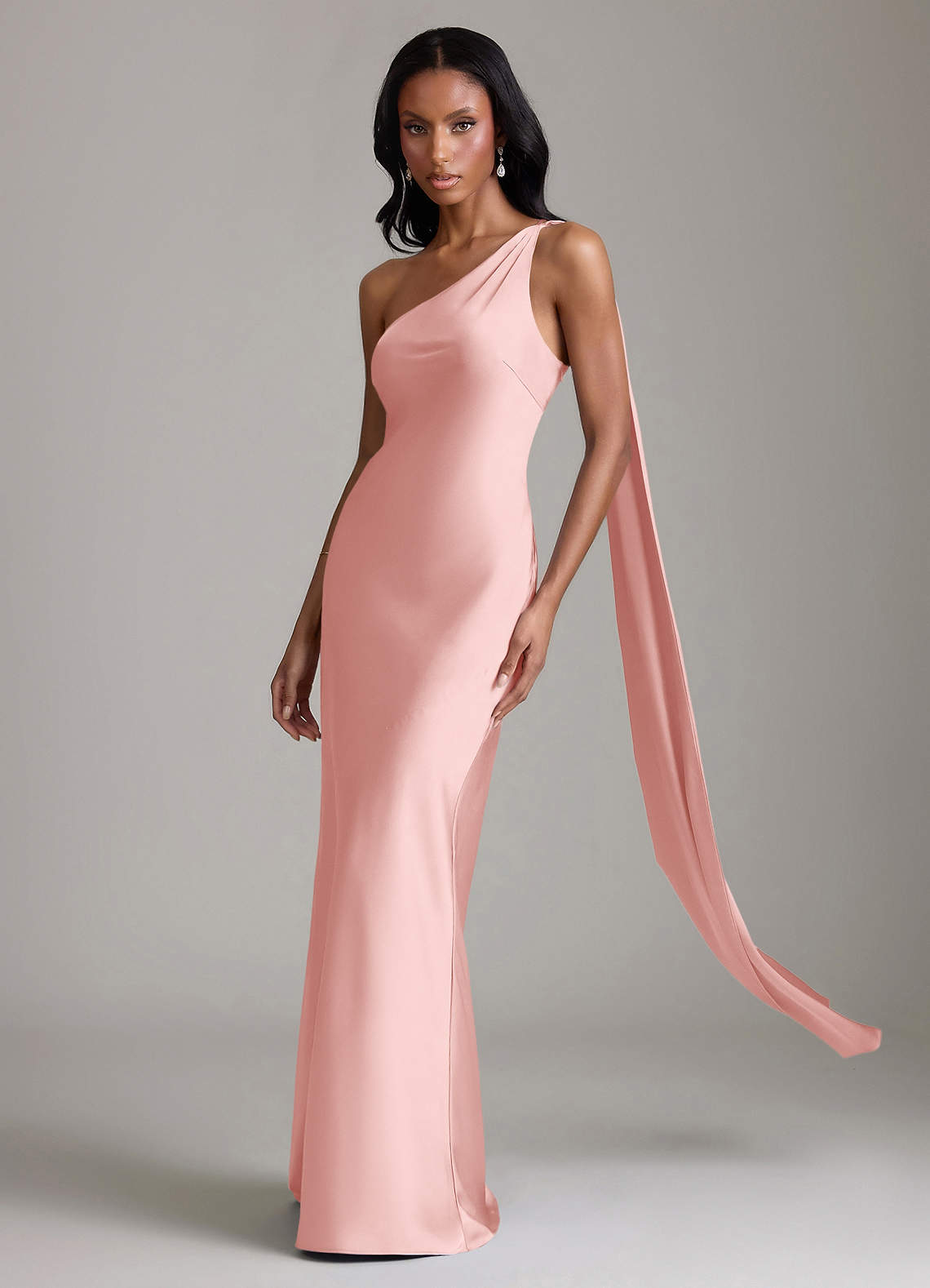 Jurk van Stretch Satijn met Zeemeermin One-Shoulder Poederroze