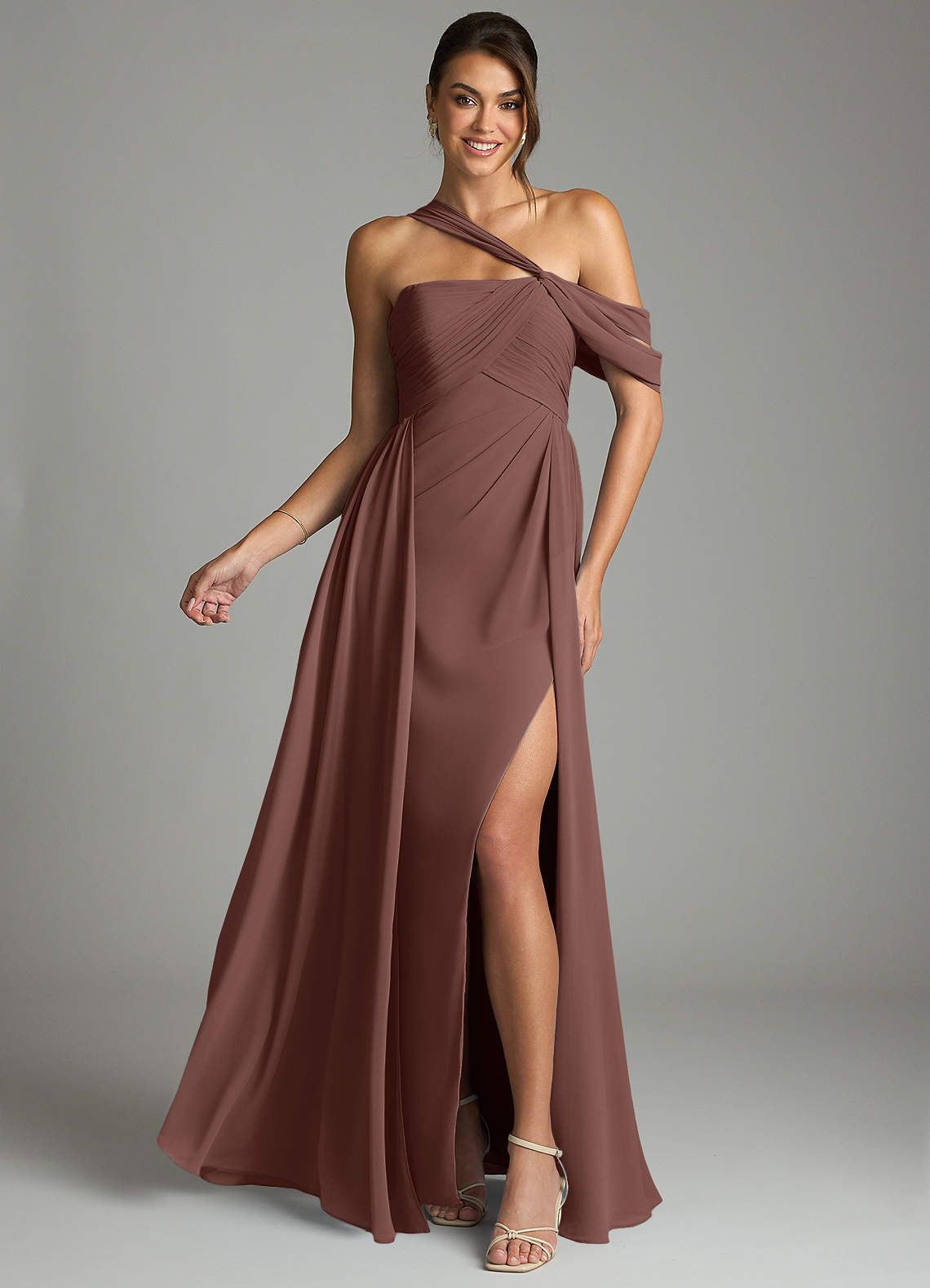 Jurk van Chiffon met A-Lijn Off the Shoulder Espresso