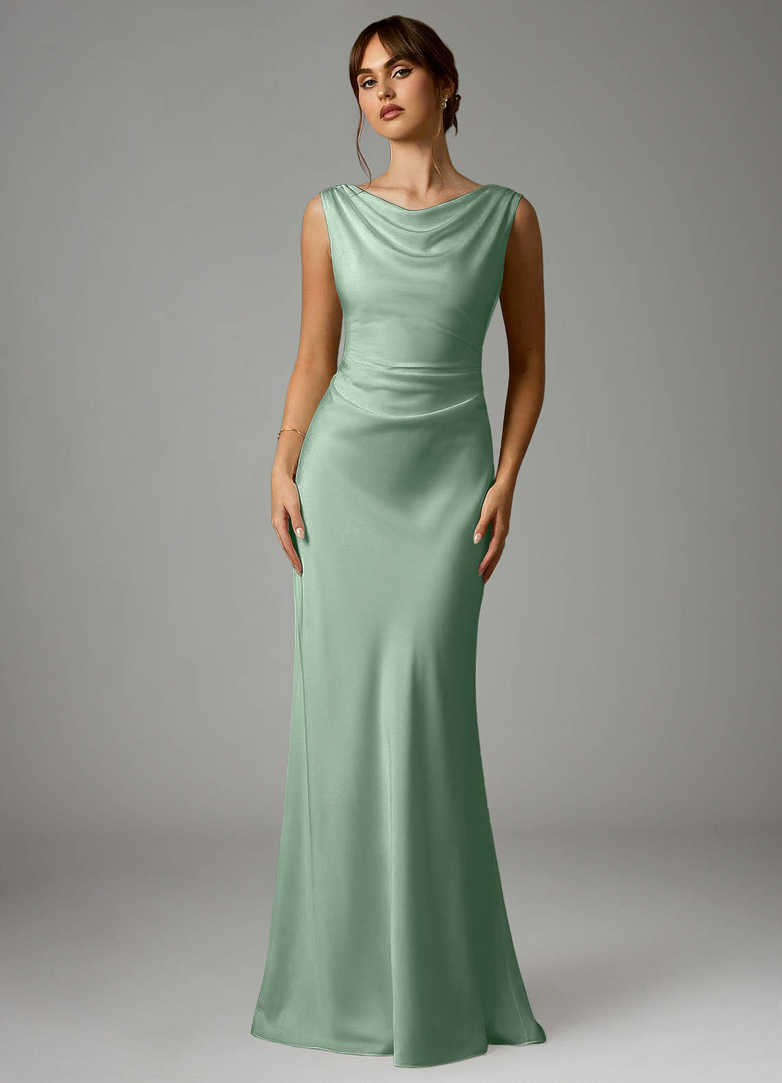 Jurk van Stretch Satijn met Zeemeermin Geplooid Agave