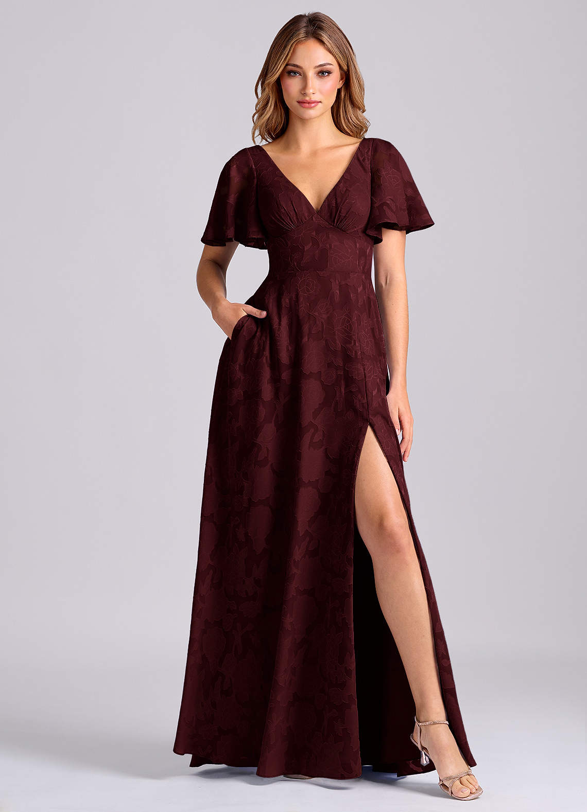 Jurk van Bloemen Burn-out met A-Lijn met Zakken Cabernet