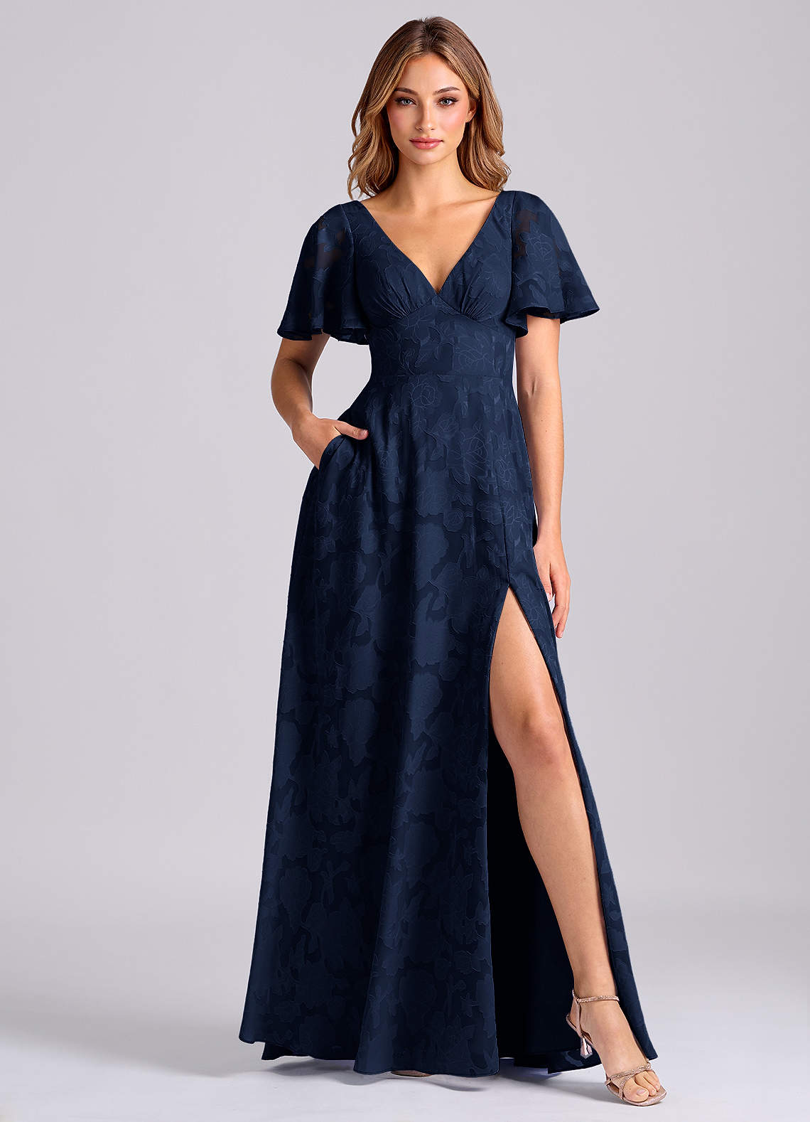 Jurk van Bloemen Burn-out met A-Lijn met Zakken Donkere Marine