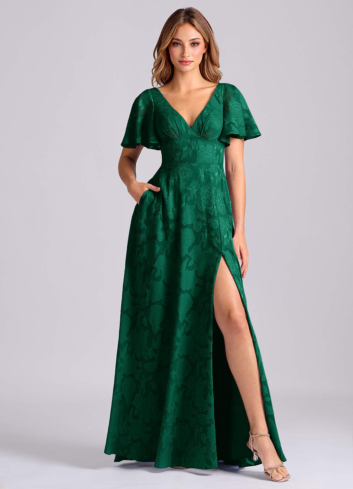 Jurk van Bloemen Burn-out met A-Lijn met Zakken Smaragd