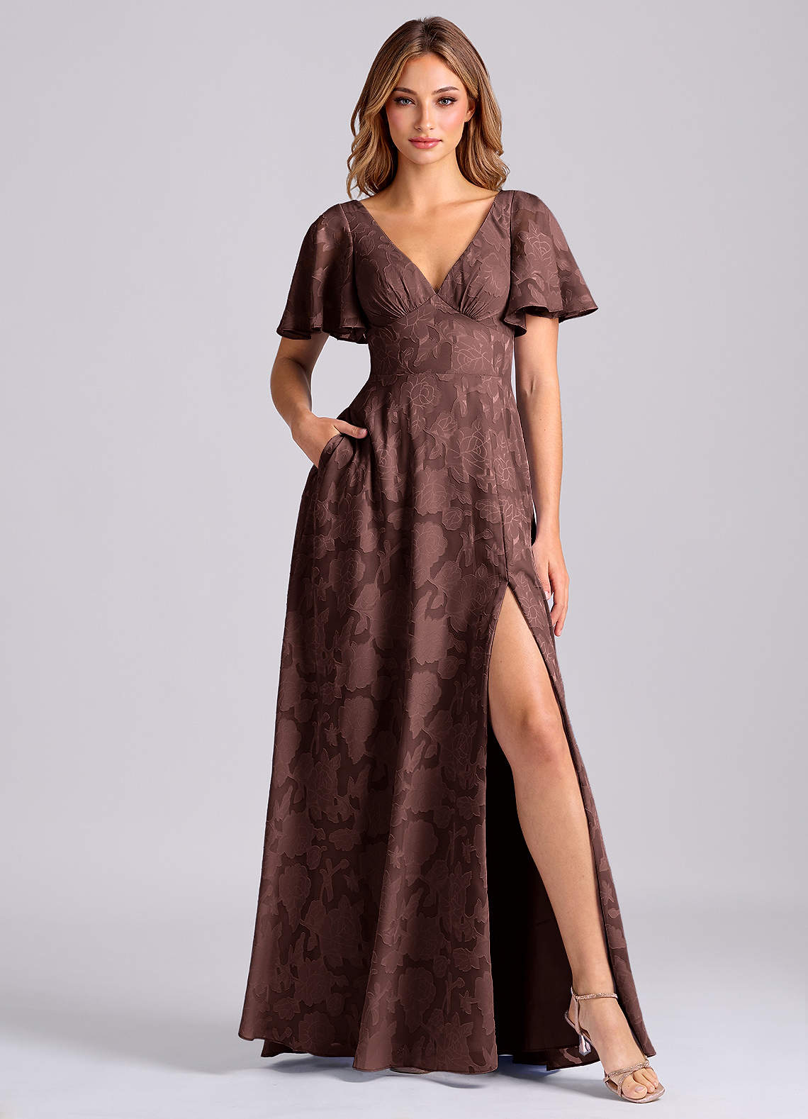 Jurk van Bloemen Burn-out met A-Lijn met Zakken Espresso