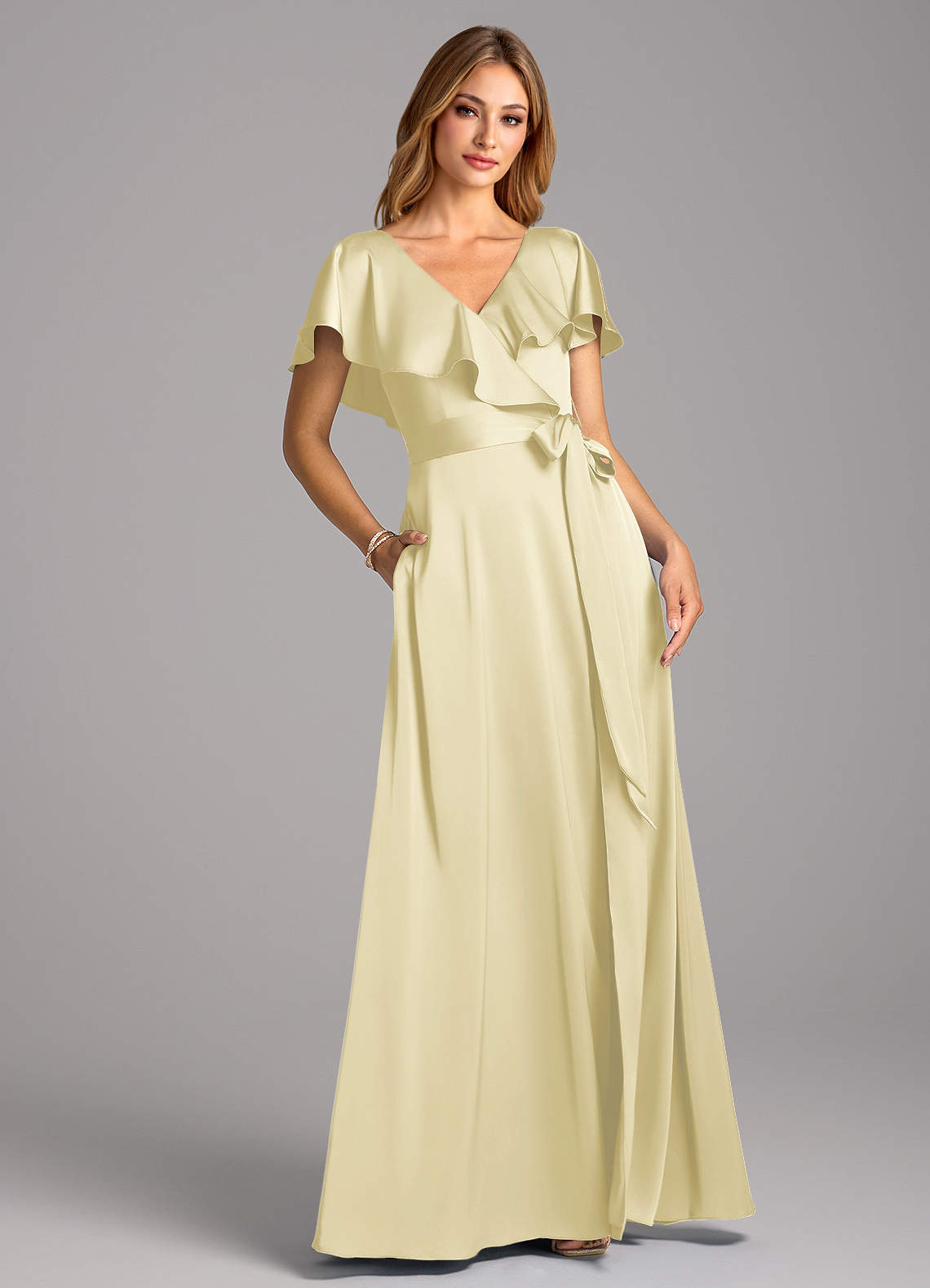 Jurk van Stretch Satijn met A-Lijn met Zakken Citroensorbet