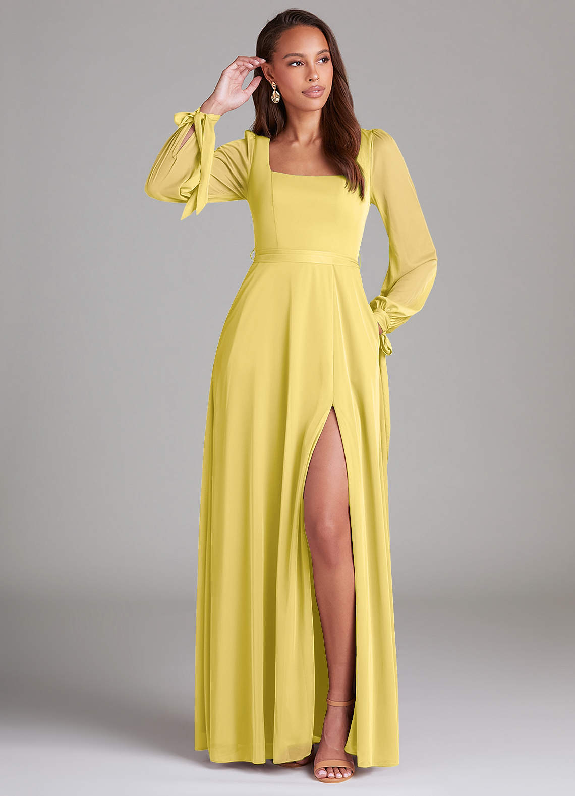 Jurk van Mesh met A-Lijn Lange mouw Kanarie