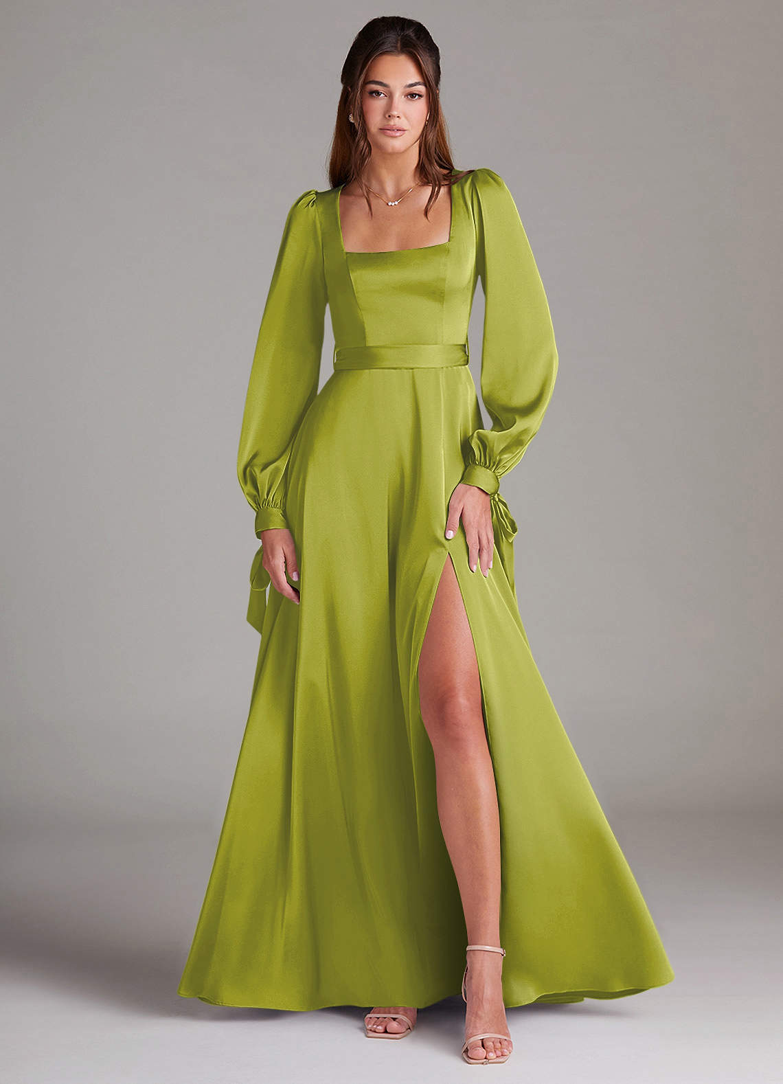 Jurk van Stretch Satijn met A-Lijn Lange mouw Citroengras