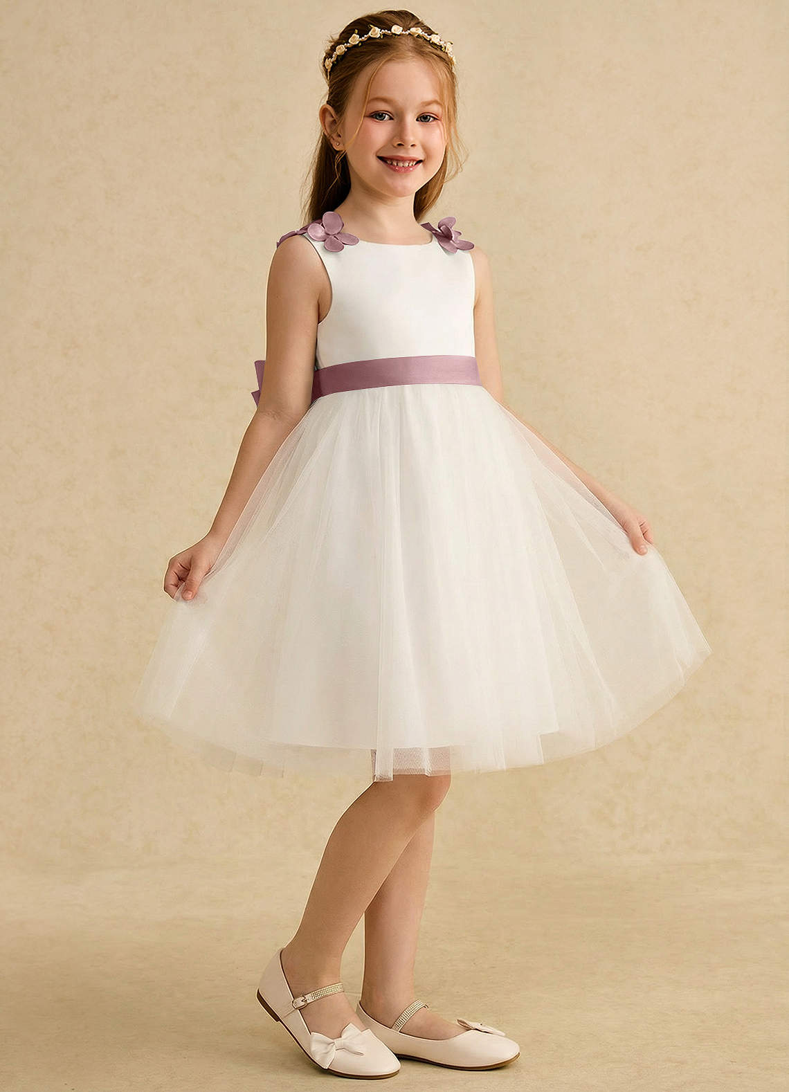 A-Lijn Jurk van Mat Satijn Boog Ivoor Stoffige Roos