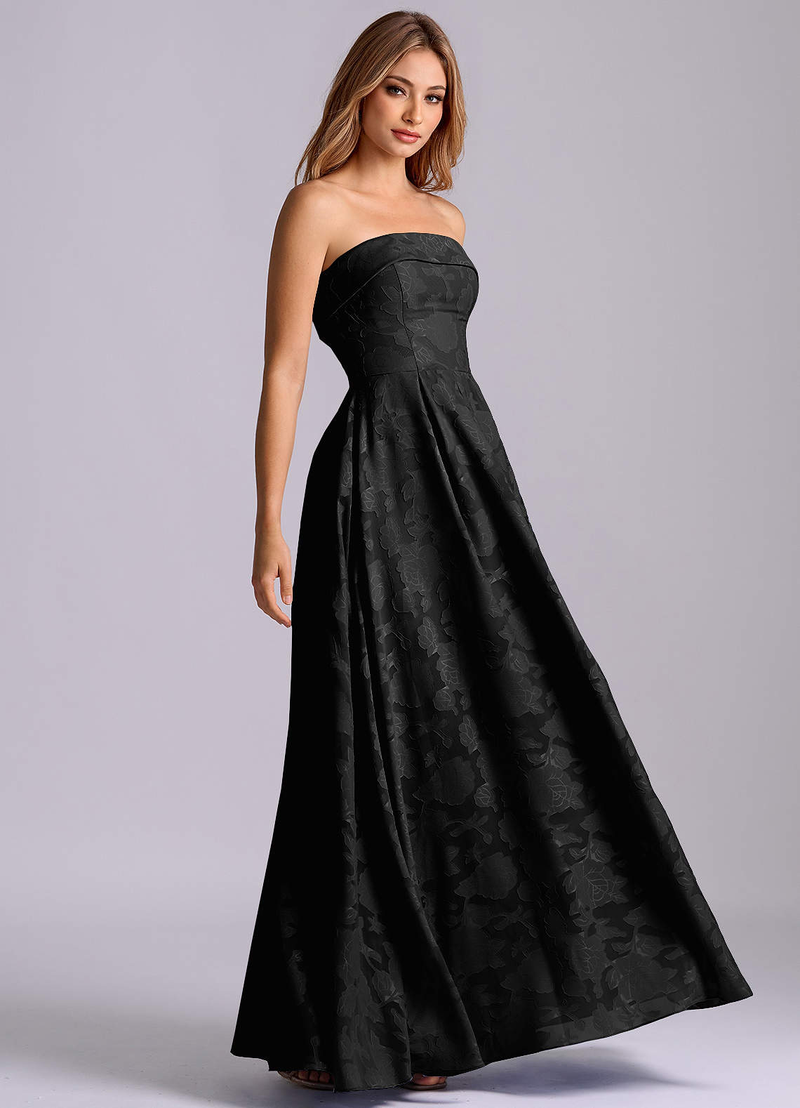 Jurk van Bloemen Burn-out met A-Lijn Strapless Zwart