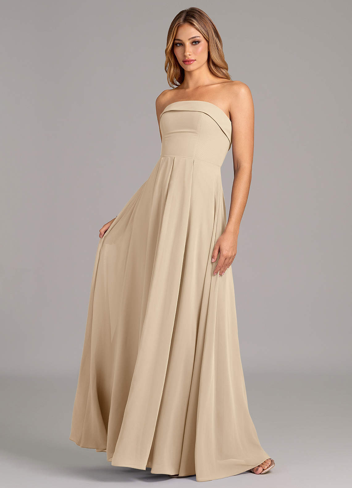 Converteerbaar Jurk van Chiffon met A-Lijn Strapless Champagne