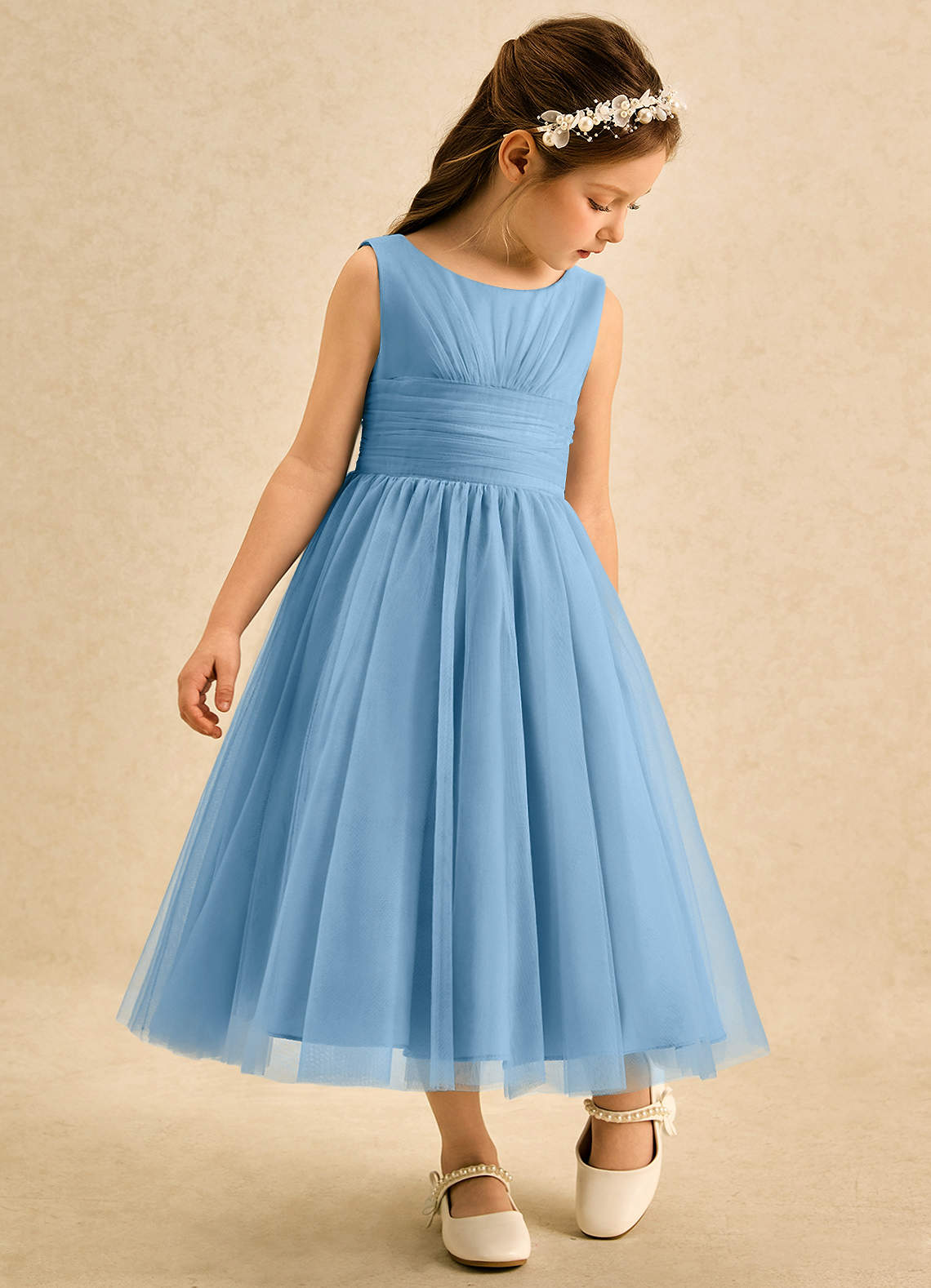 A-Lijn Jurk van Tule Geplooid Staal Blauw