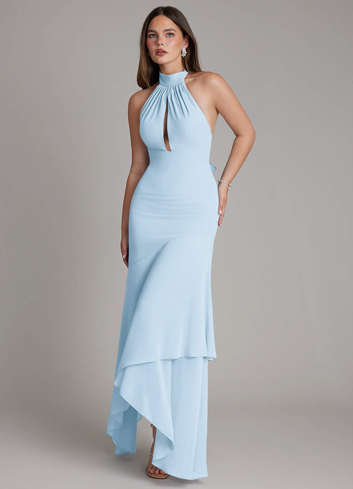 Jurk van Chiffon met Zeemeermin Hoge Kraag Hemelsblauw