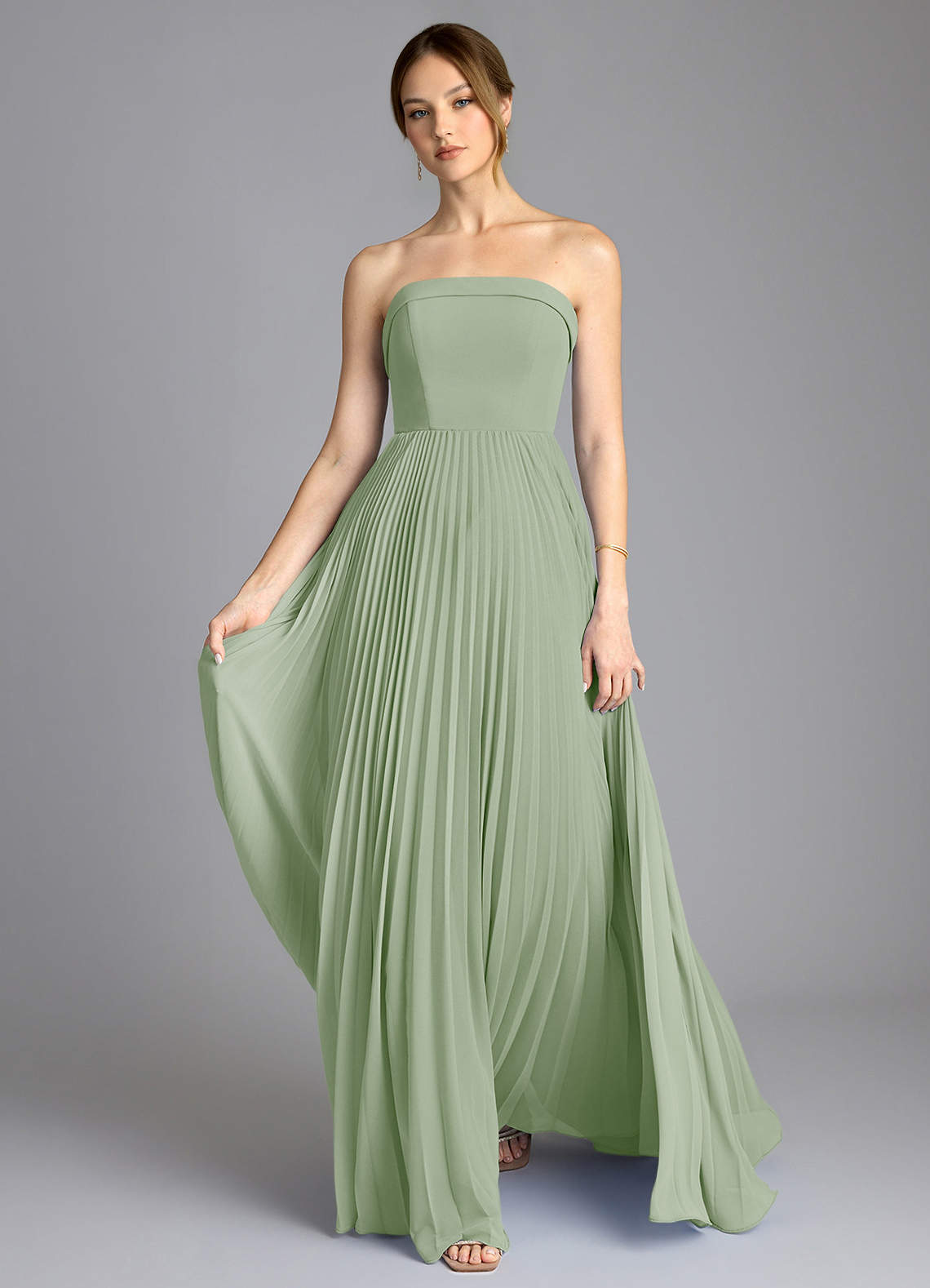 Jurk van Chiffon met A-Lijn Strapless Stoffige Salie