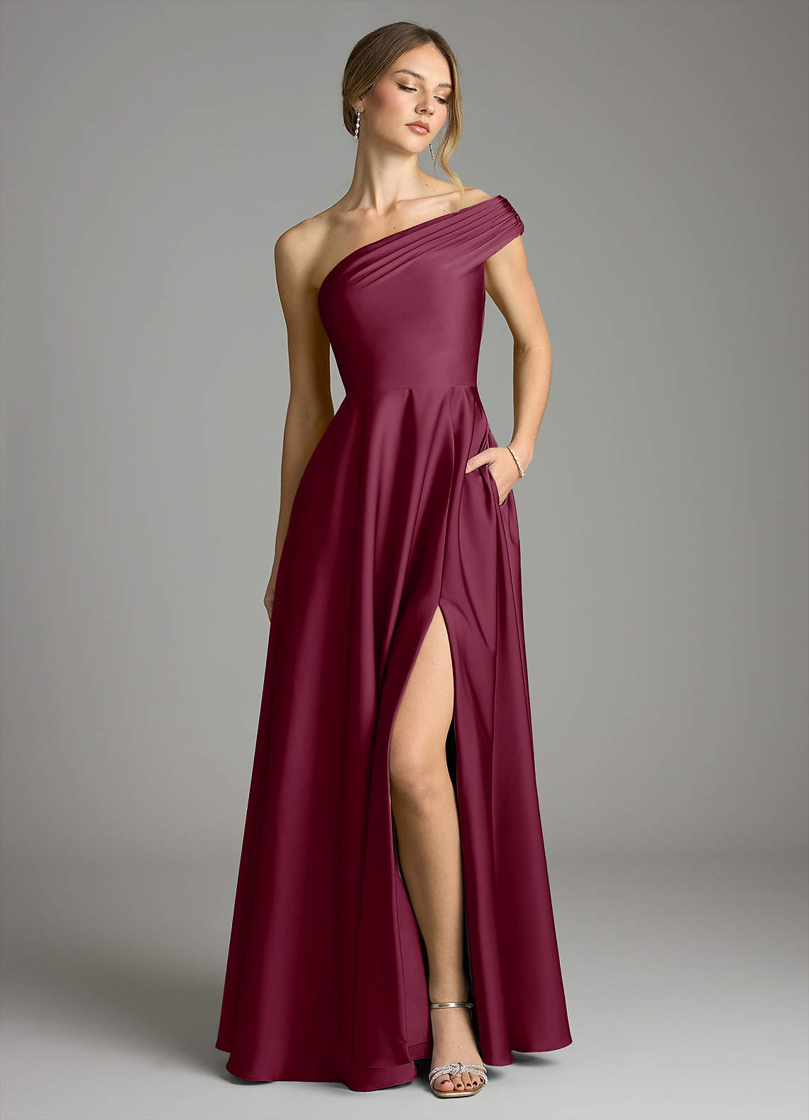 Jurk van Stretch Satijn met A-Lijn Off the Shoulder Moerbei