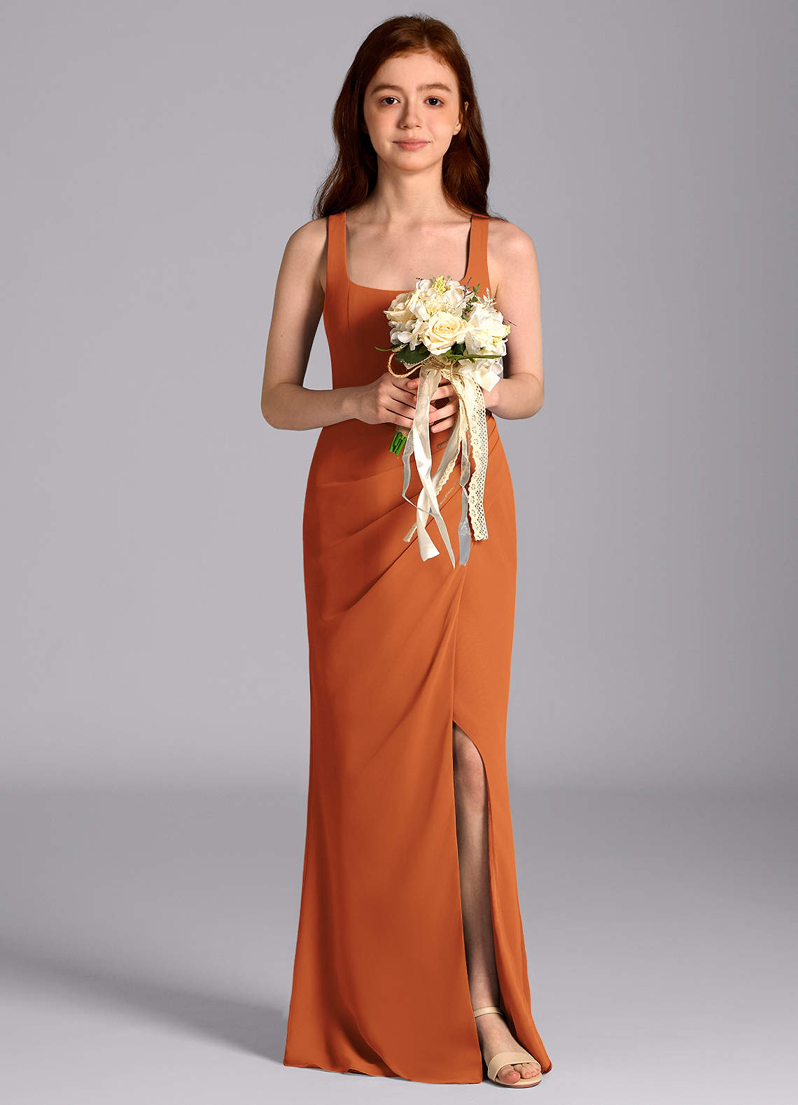Jurk van Chiffon met Zeemeermin Geplooid Kaneel