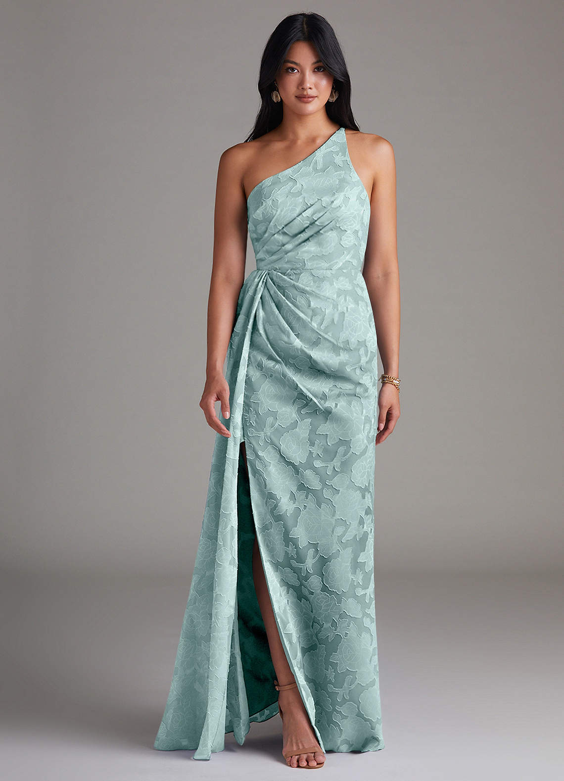 Jurk van Bloemen Burn-out met Kolom One-Shoulder De Nevel