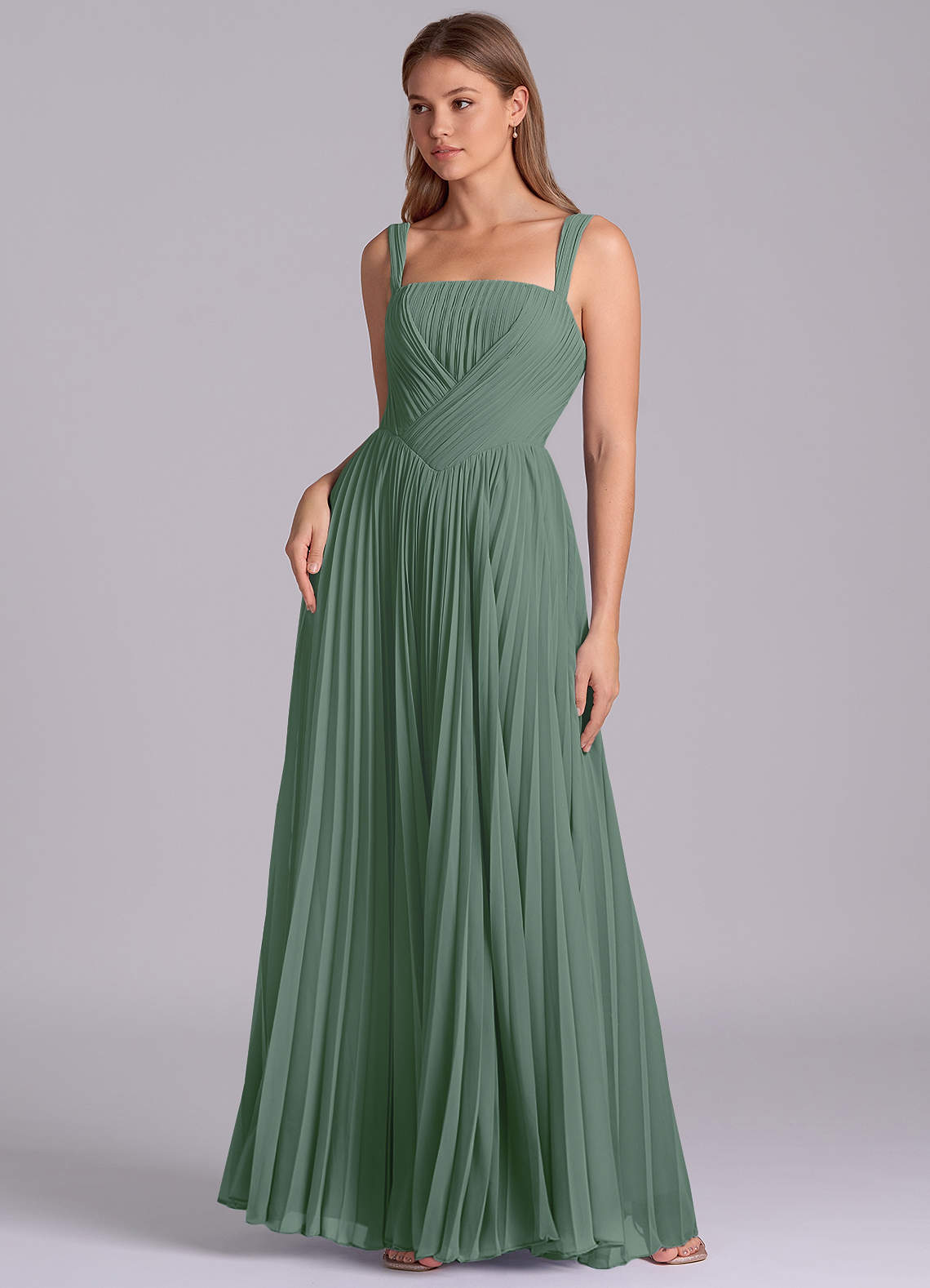 Jurk van Chiffon met A-Lijn Geplooid Eucalyptus