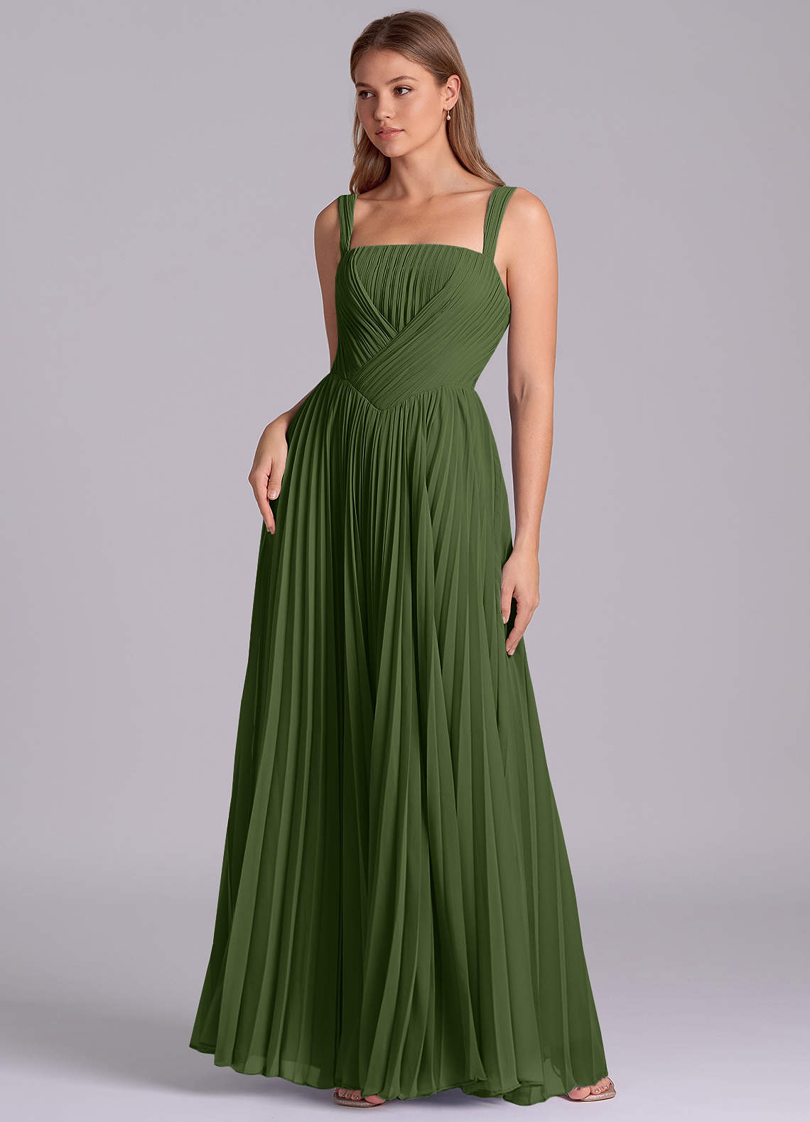 Jurk van Chiffon met A-Lijn Geplooid Olijf