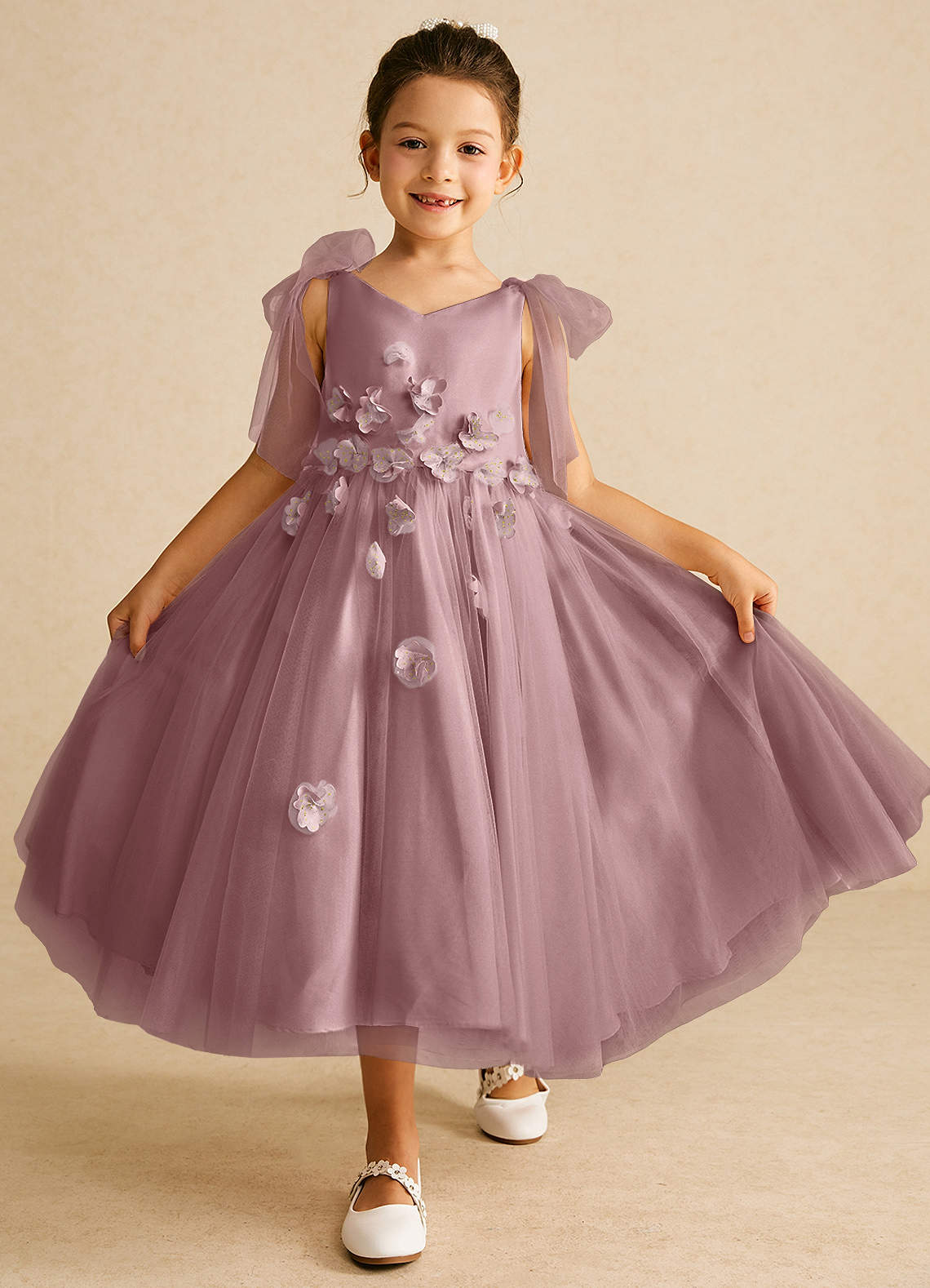 A-Lijn Jurk van Mat Satijn Boog Stoffige Roos