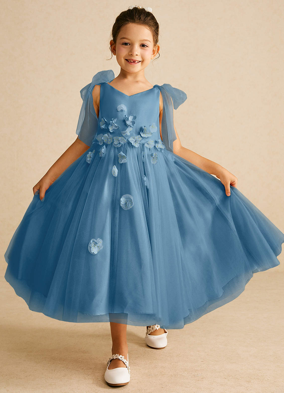 A-Lijn Jurk van Mat Satijn Boog Staal Blauw