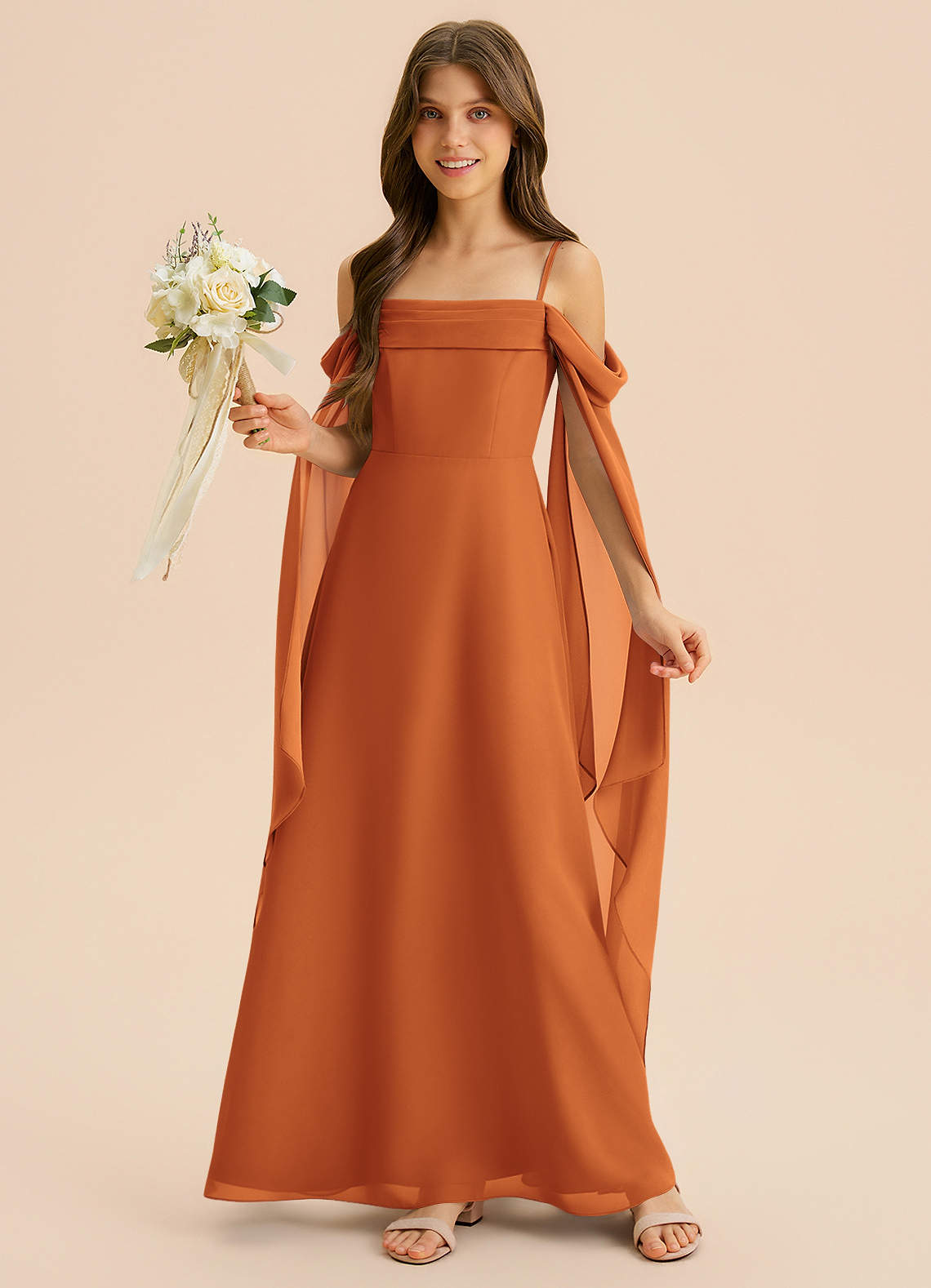 Jurk van Chiffon met A-Lijn Geplooid Kaneel
