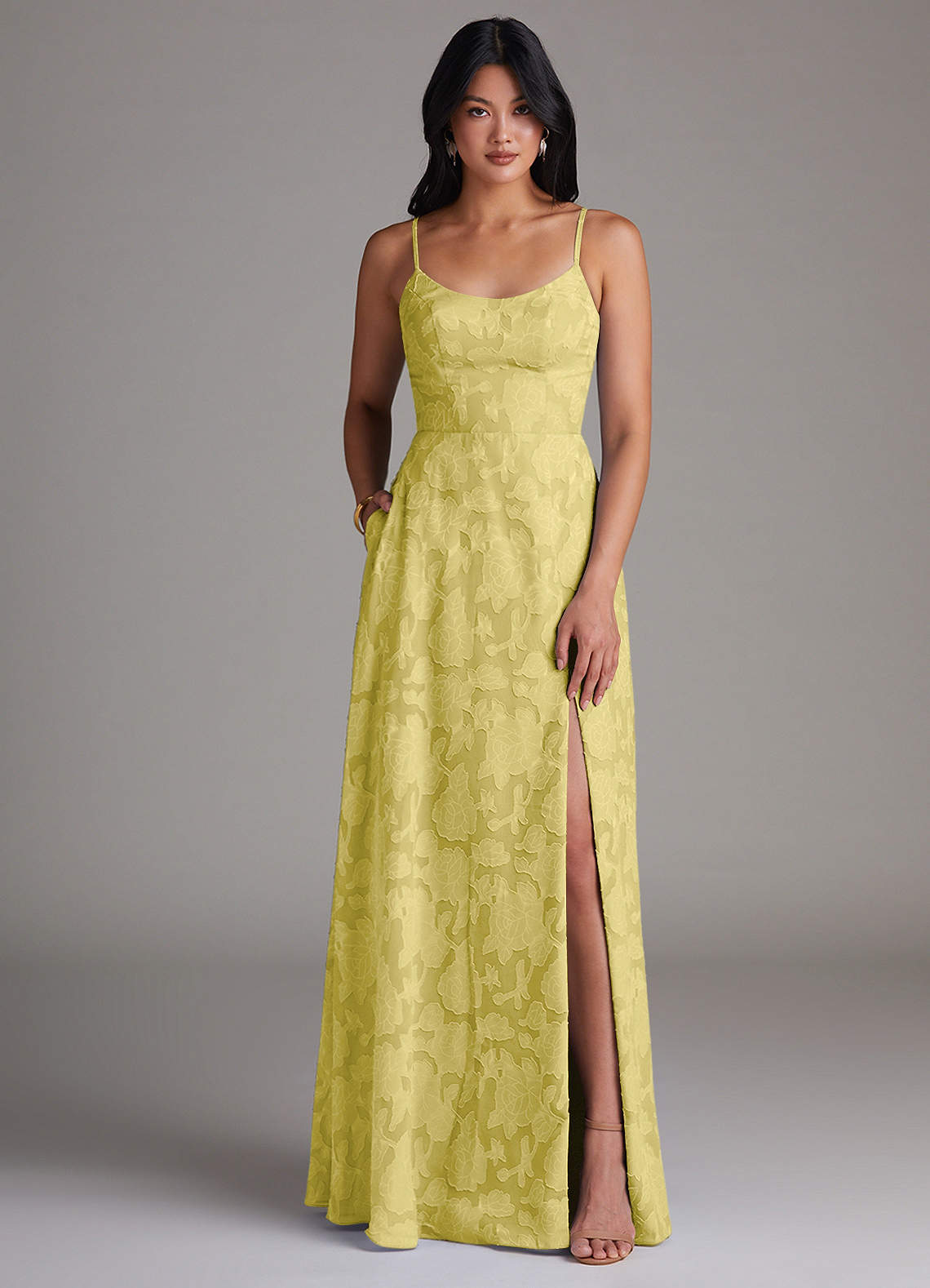 Jurk van Bloemen Burn-out met A-Lijn Zijsplit Kanarie