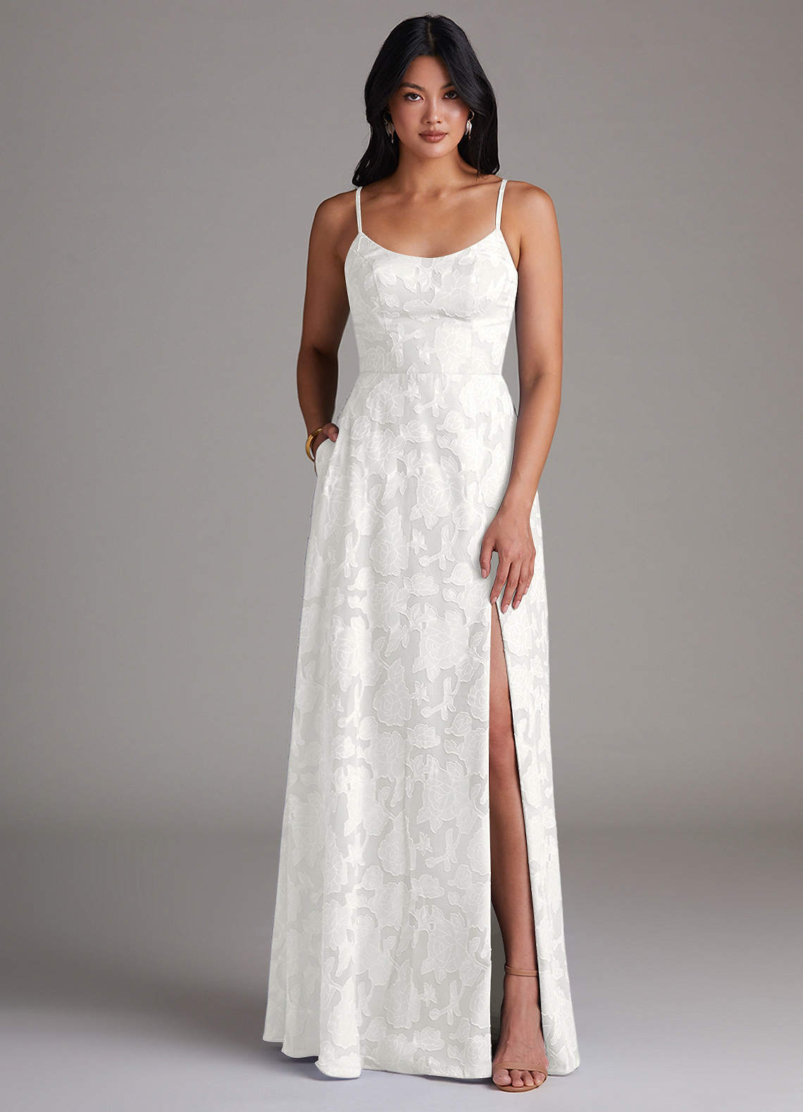 Jurk van Bloemen Burn-out met A-Lijn Zijsplit Wit