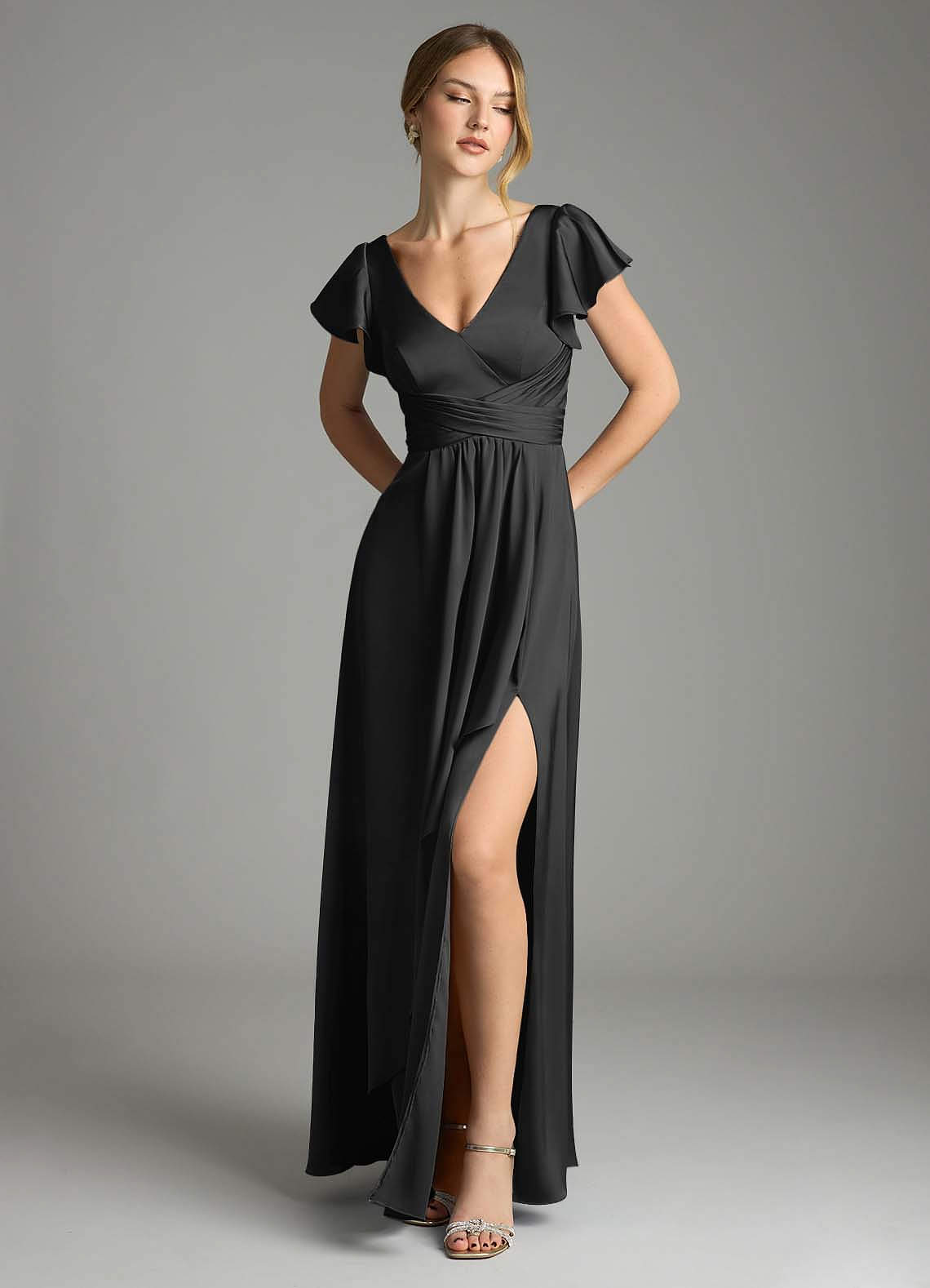 Jurk van Stretch Satijn met A-Lijn Zwart