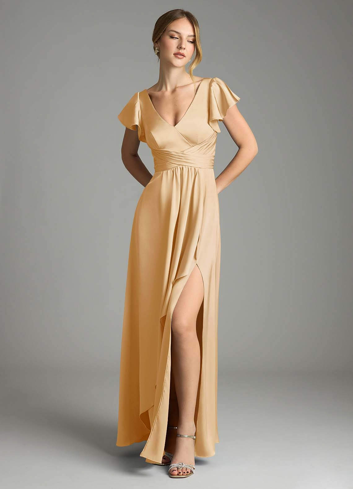 Jurk van Stretch Satijn met A-Lijn Goud