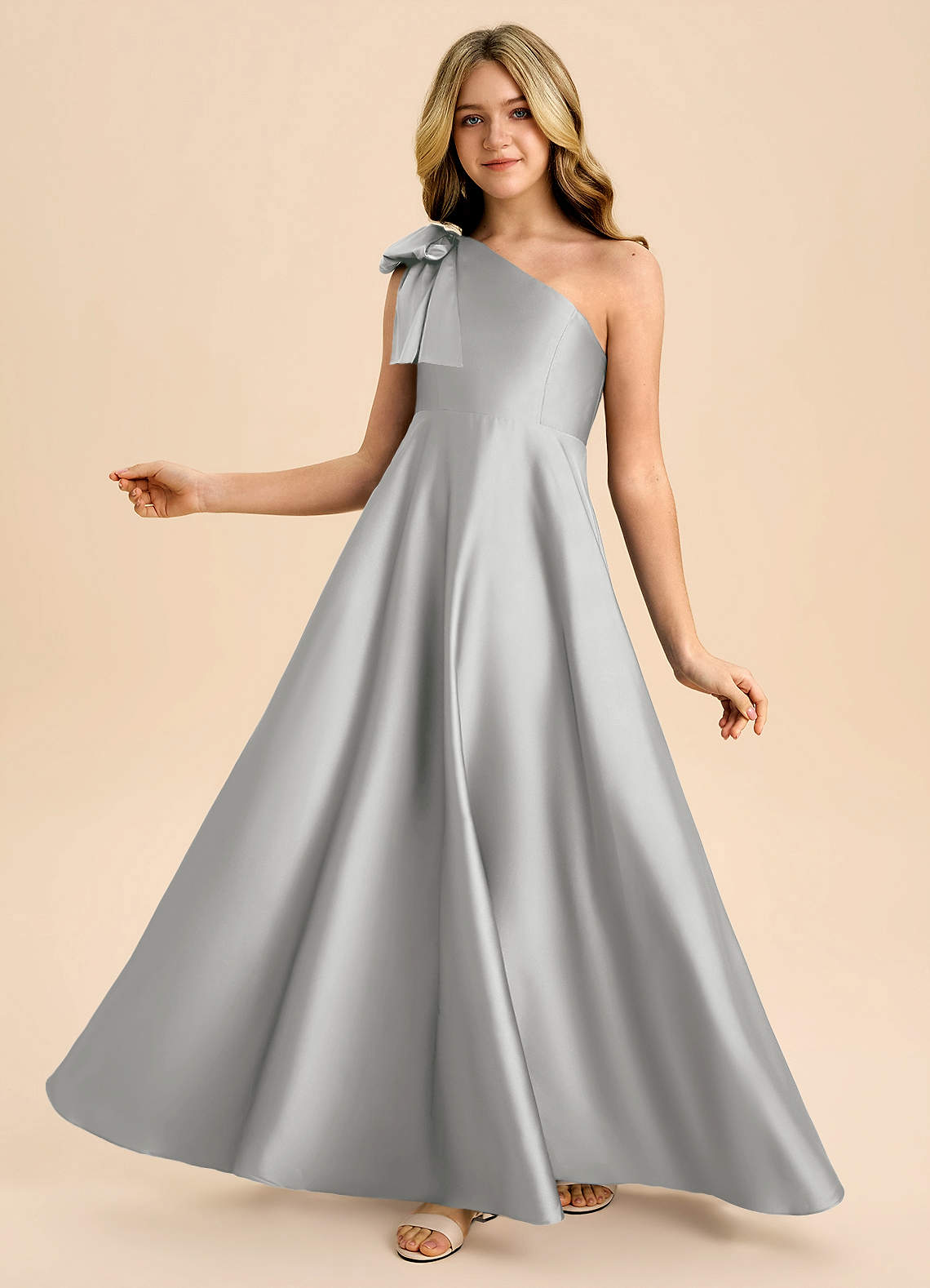 Jurk van Stretch Satijn met A-Lijn Boog Zilver