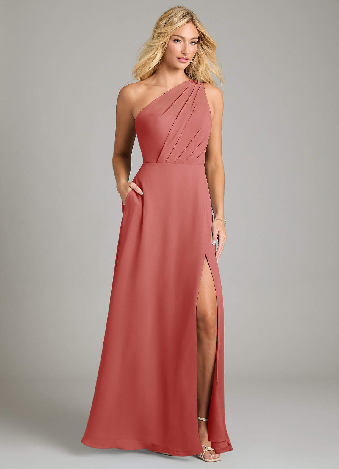 Jurk van Chiffon met A-Lijn One-Shoulder Antieke Roos