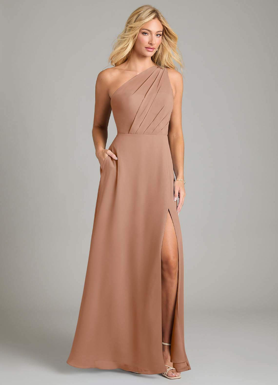Jurk van Chiffon met A-Lijn One-Shoulder Champagne Roos