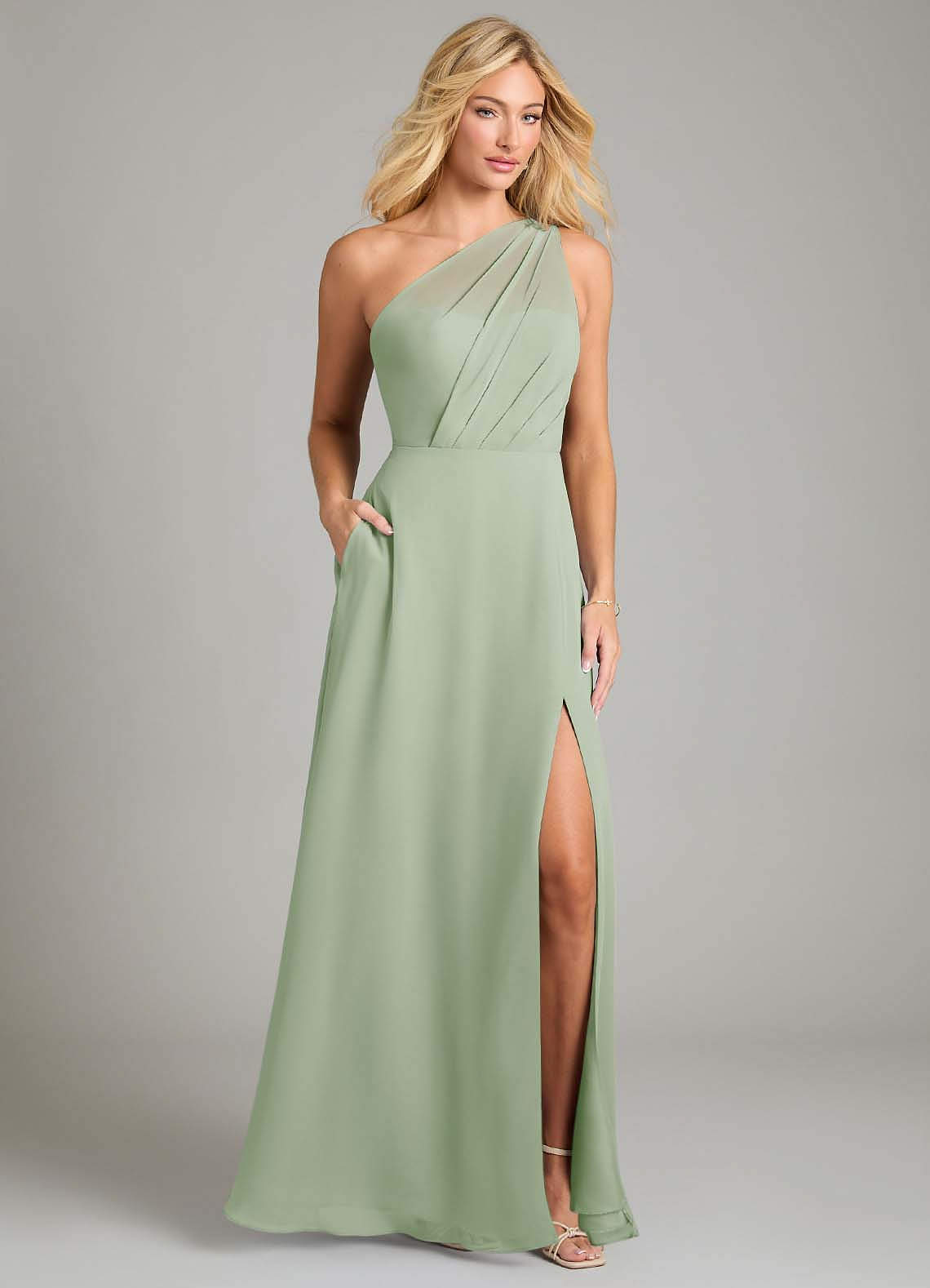 Jurk van Chiffon met A-Lijn One-Shoulder Stoffige Salie
