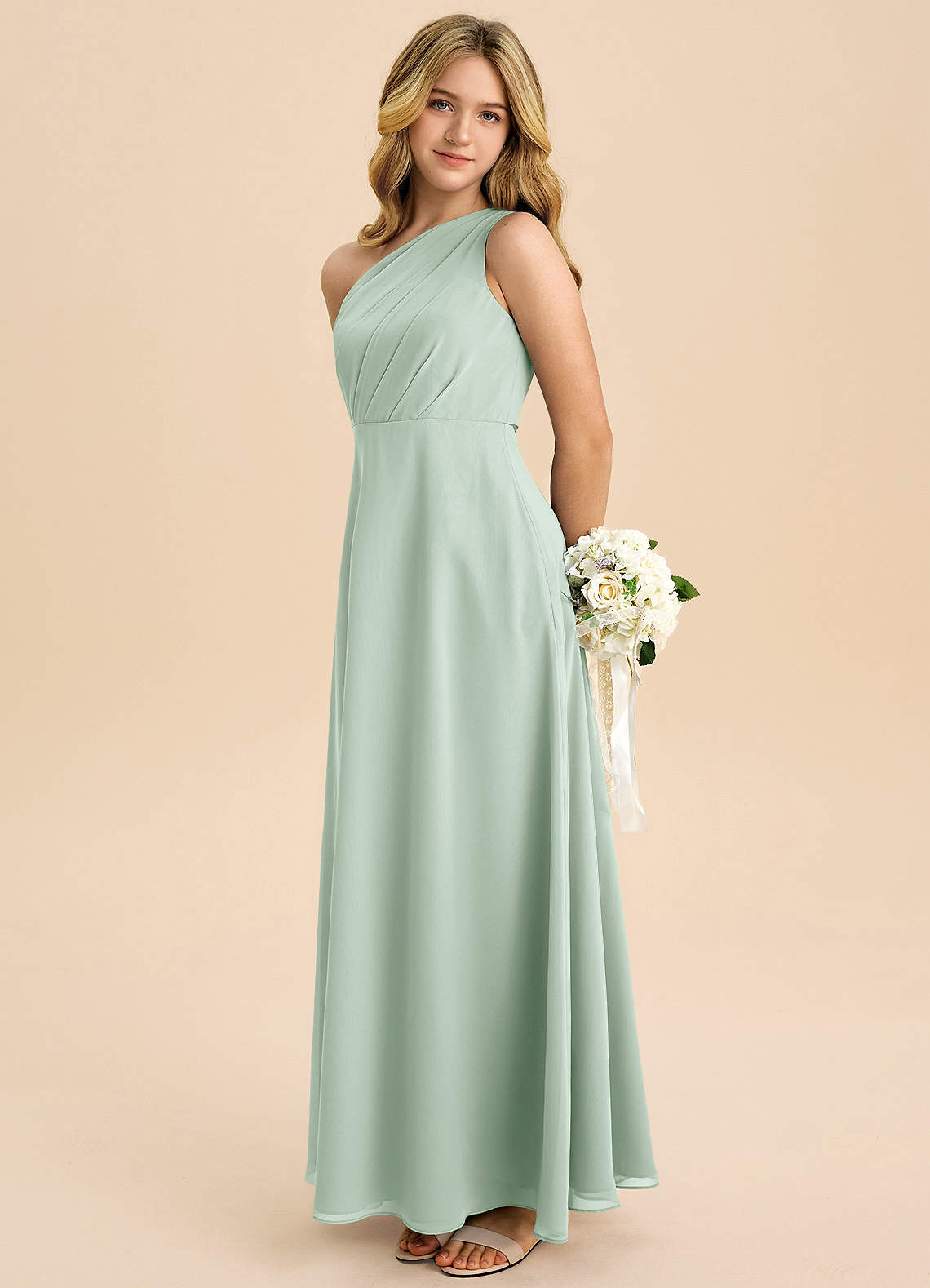 Jurk van Chiffon met A-Lijn Geplooid Agave