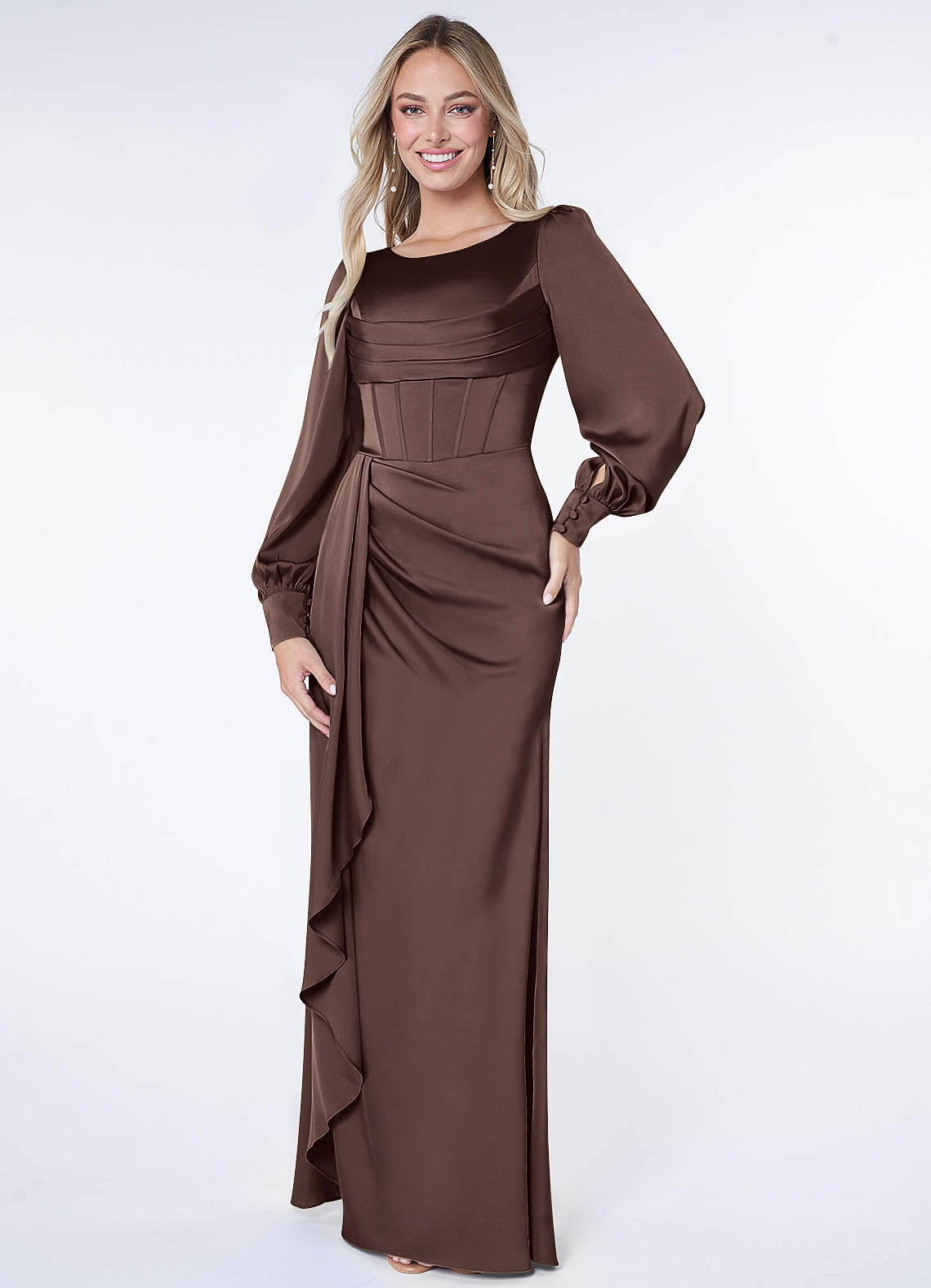 Jurk van Stretch Satijn met Zeemeermin Lange mouw Ganache